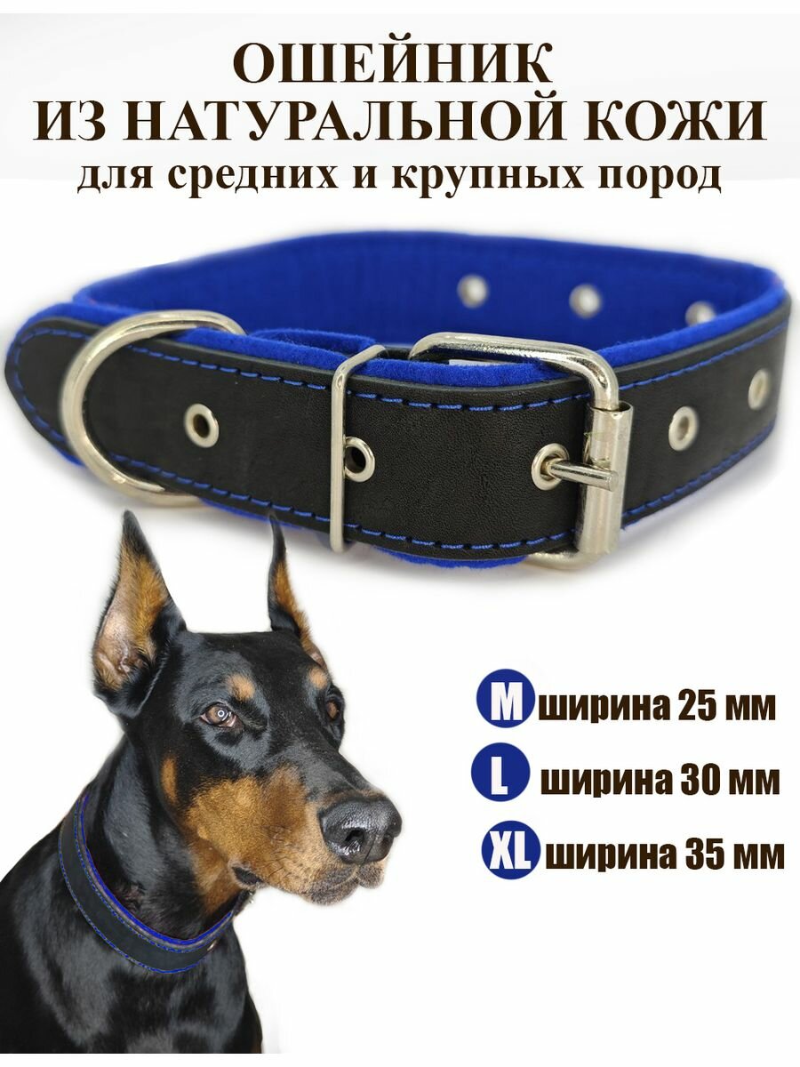 Ошейник для собак крупных пород Dober-Крут кожаный синий 2XL 50-72 см
