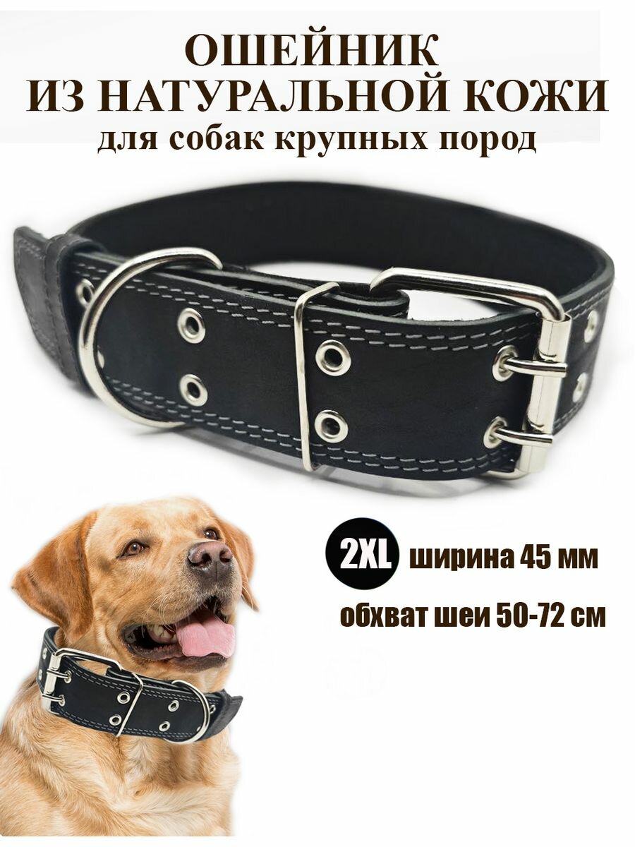 Купить Ошейник для собак крупных пород Dober-Крут кожаный черный 2XL 50-72 см