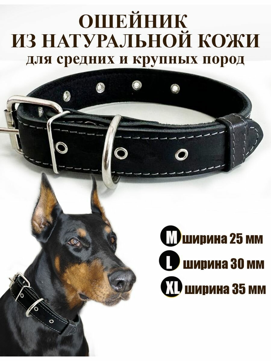 Ошейник для собак крупных пород Dober-Крут кожаный черный 2XL 50-72 см