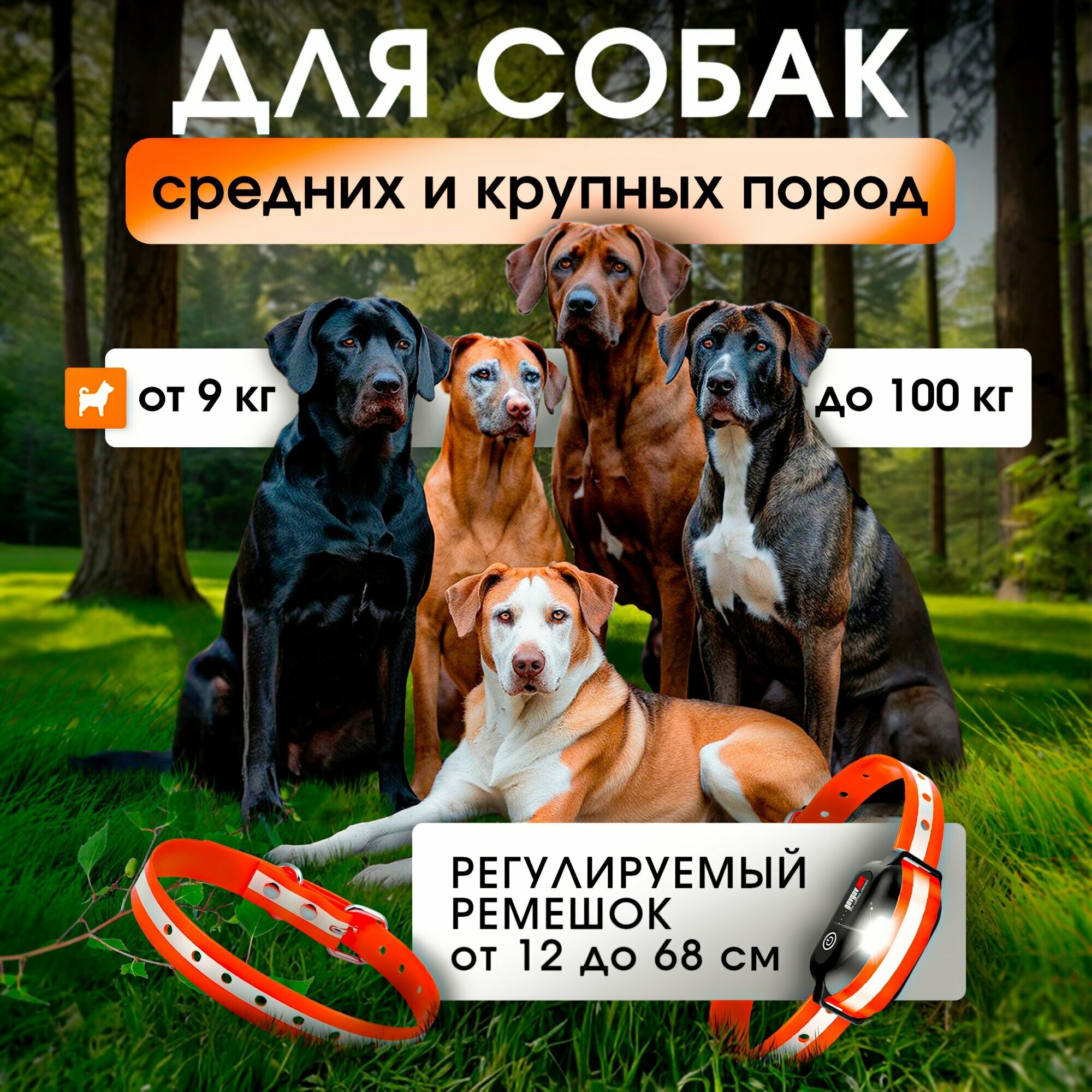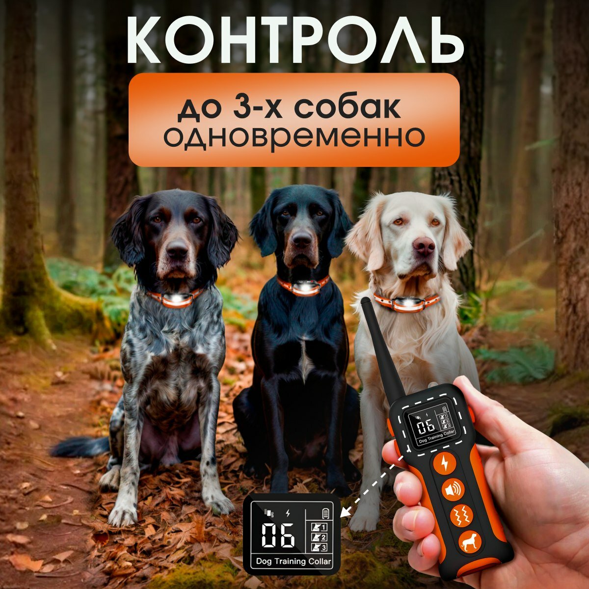 Электронный ошейник для дрессировки собак. Водонепроницаемый, оранжевый