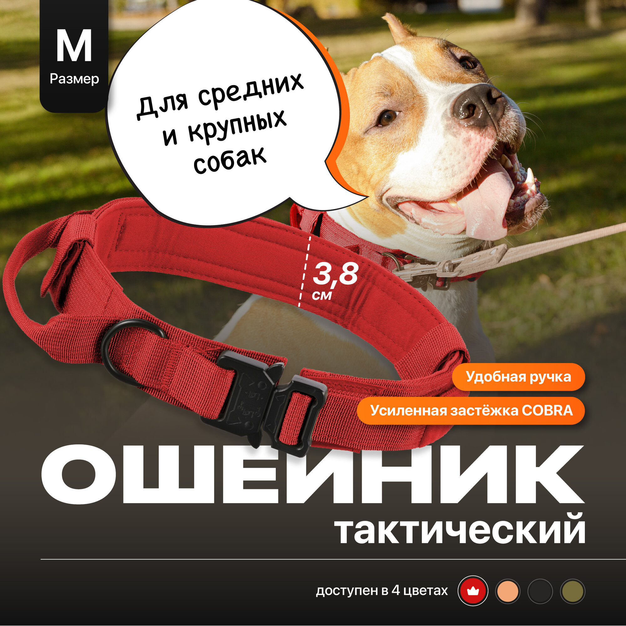 СохранитьОшейник для собак крупных и средних пород с ручкой, SSY, Тактический ошейник, Размер M, Красный интересное: