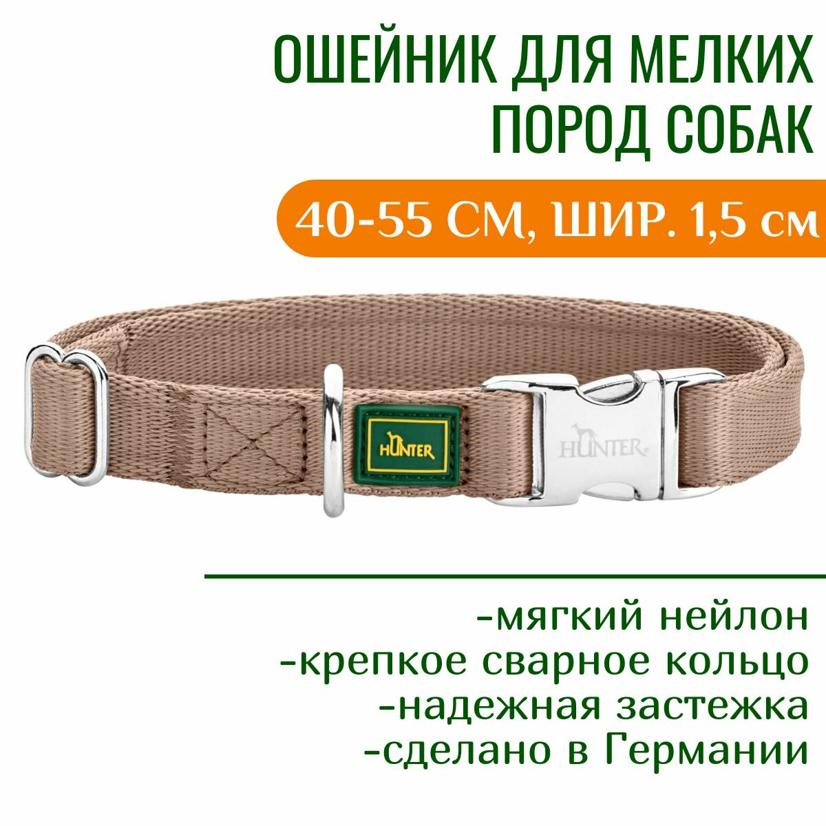 Ниже Вы можете прочитать отзывы на Hunter Vario Basic Alu-Strong Inari нейлоновый ошейник с металлическим фастексом, цвет бежевый, размер 40-55 см, ширина 2 см, ознакомится с подробными характеристиками, посмотреть интересные обзоры и фотографии на Hunter Vario Basic Alu-Strong Inari нейлоновый ошейник с металлическим фастексом, цвет бежевый, размер 40-55 см, ширина 2 см.