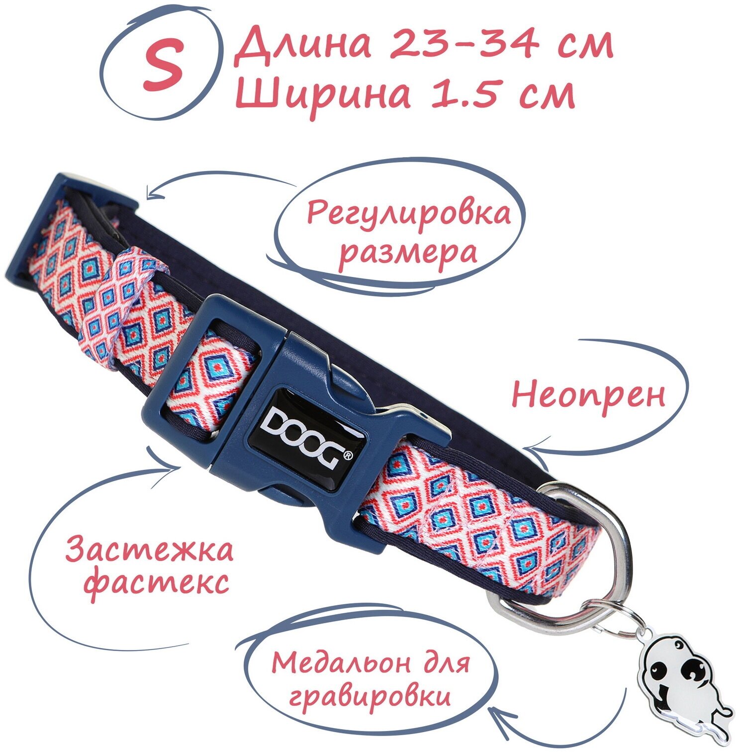Ошейник для собак DOOG "Scooby", мультиколор, 16-25см XS (Австралия)