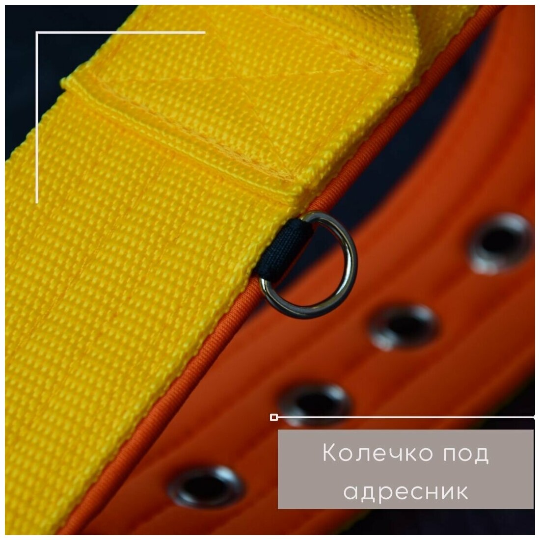 Ошейник для собак средних и крупных пород. Широкий ошейник с мягким подкладом. Сварная фурнитура. Премиум качество. Обхват 35-47 см. Цвет черный с оранжевым