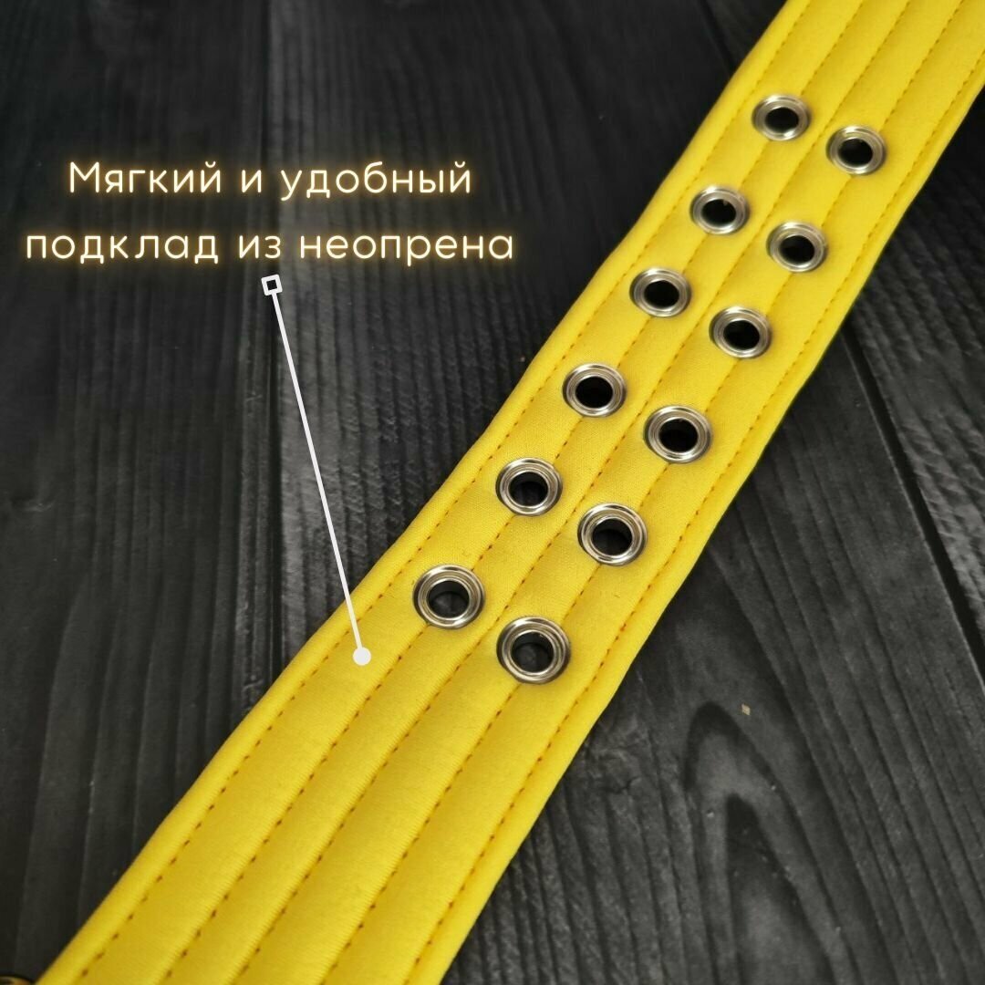 Ошейник с ручкой для собак средних и крупных пород с мягким подкладом. Ширина 4.5 см. Сварная фурнитура. Обхват 43-55 см. Цвет желтый с черным