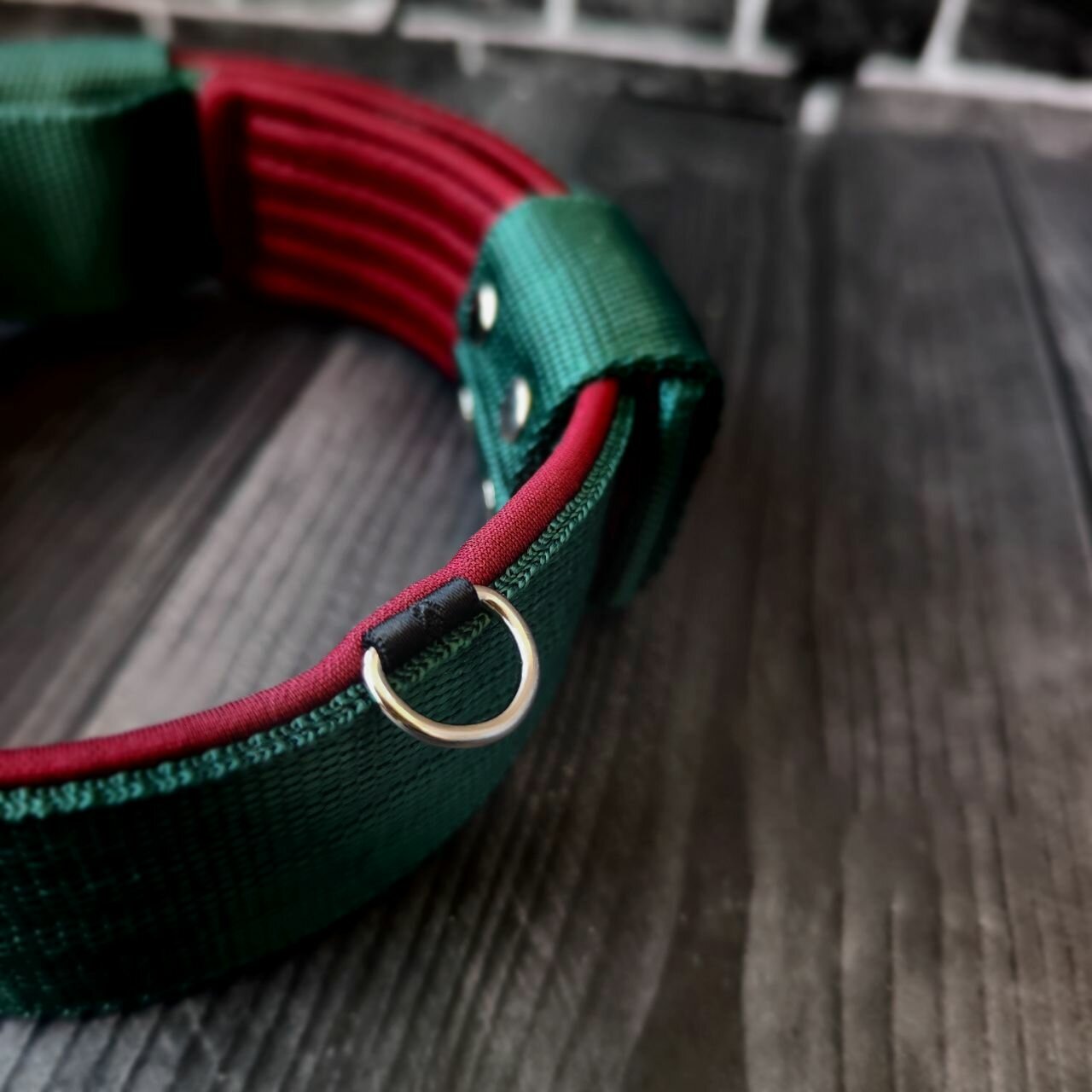 Ошейник для собак мелких пород. Ширина 4.5 см. Сварная фурнитура. Обхват 30-42 см. Цвет изумрудный с бордовым
