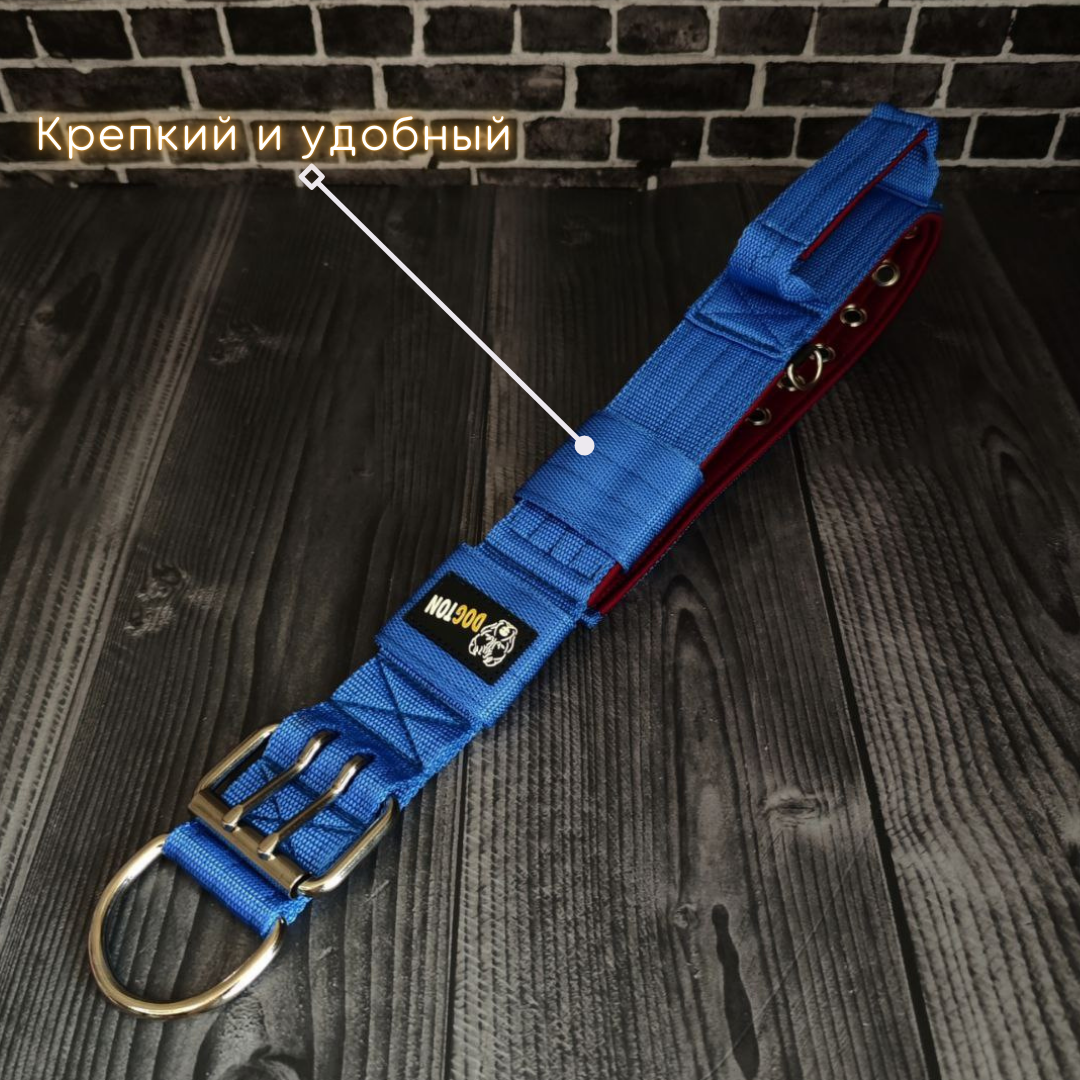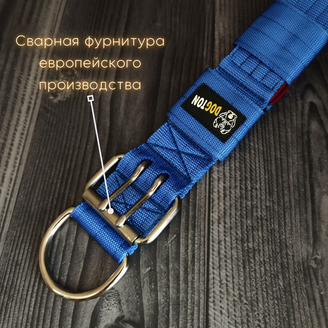 Ошейник широкий DOGTON для собак средних и крупных пород. Усиленная пряжка. Для прогулок и дрессировки. Ширина 5 см. Синий с синим подкладом Обхват 53-65 см.