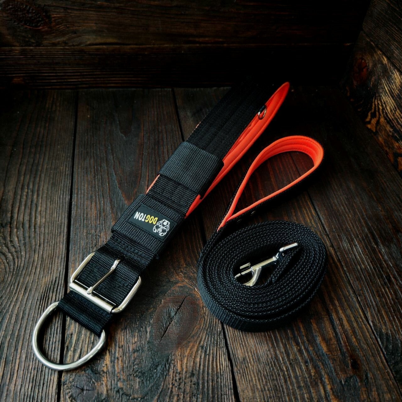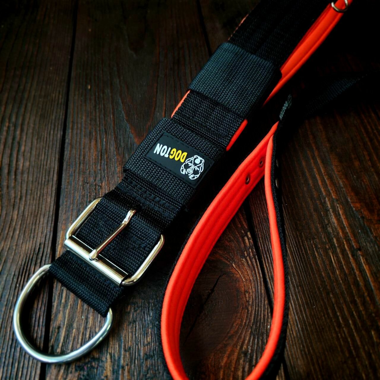 Комплект DOGTON ошейник и поводок 1.5 метра. Для собак средних и крупных пород. Ширина ошейника 5.5 см. Обхват шеи 43-57 см.