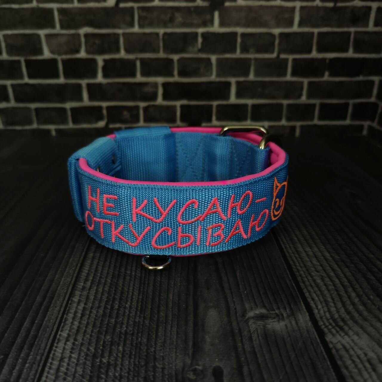 Широкий ошейник с вышивкой "Не ссы я сыт" от DOGTON, с принтом, с рисунком для собак крупных и средних пород. Ширина 5.5 см. Обхват шеи 35-47 см.