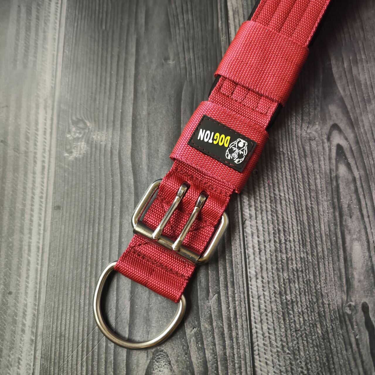 Ошейник для собак Dogton широкий 5.5 см. Подходит для щенков и взрослых собак. Для ежедневных прогулок, занятия спортом и дрессировки. Обхват шеи 53-65 см. Цвет черный с красным подкладом.
