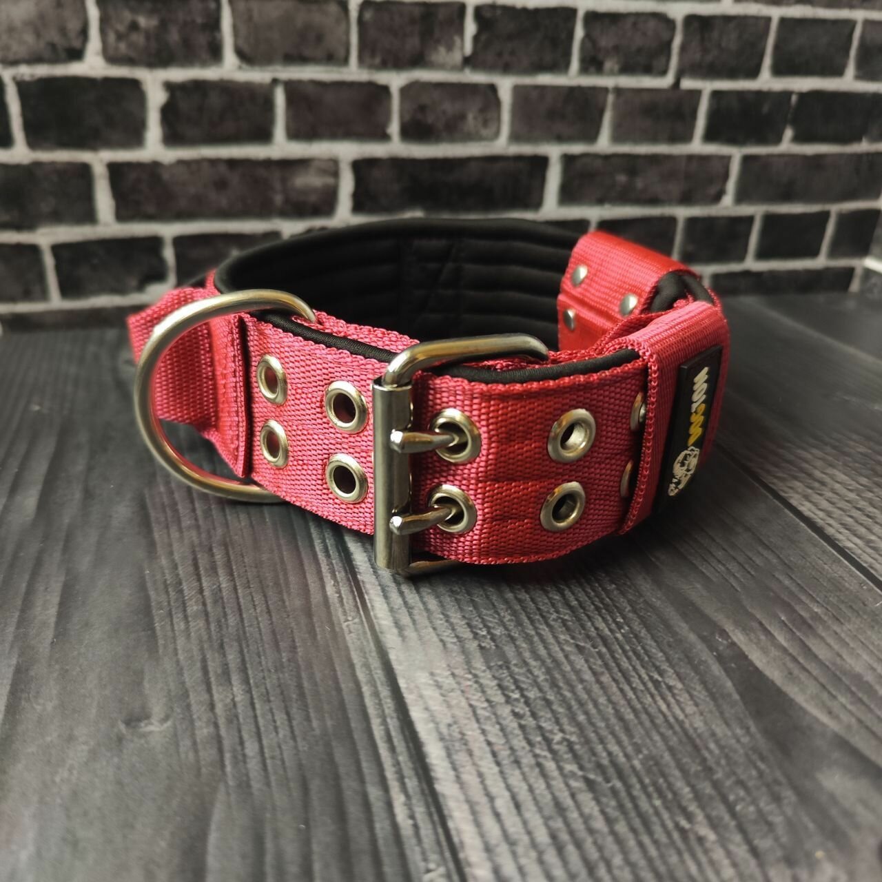 Ошейник для собак средних и крупных пород. Ширина 4.5 см. Сварная фурнитура. Обхват 53-65 см. Цвет красный с бордовым