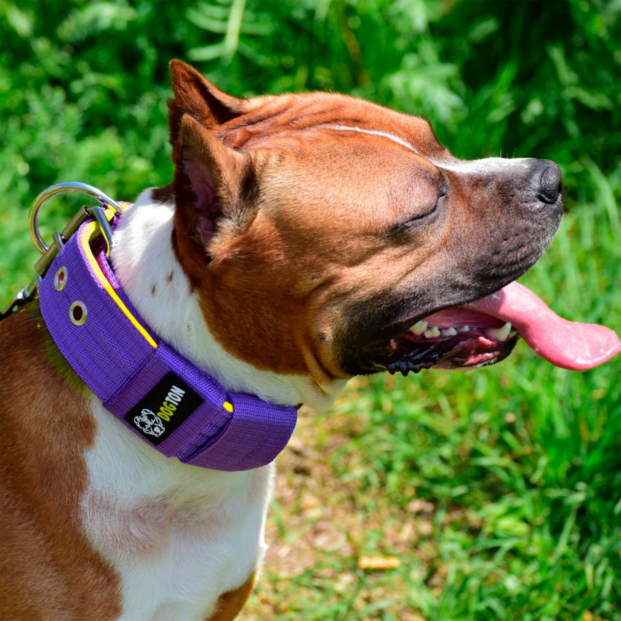 Купить Ошейник для собак широкий с мягким подкладом. Ширина 5.5 см. Обхват 53-65 см. Цвет фиолетовый с желтым