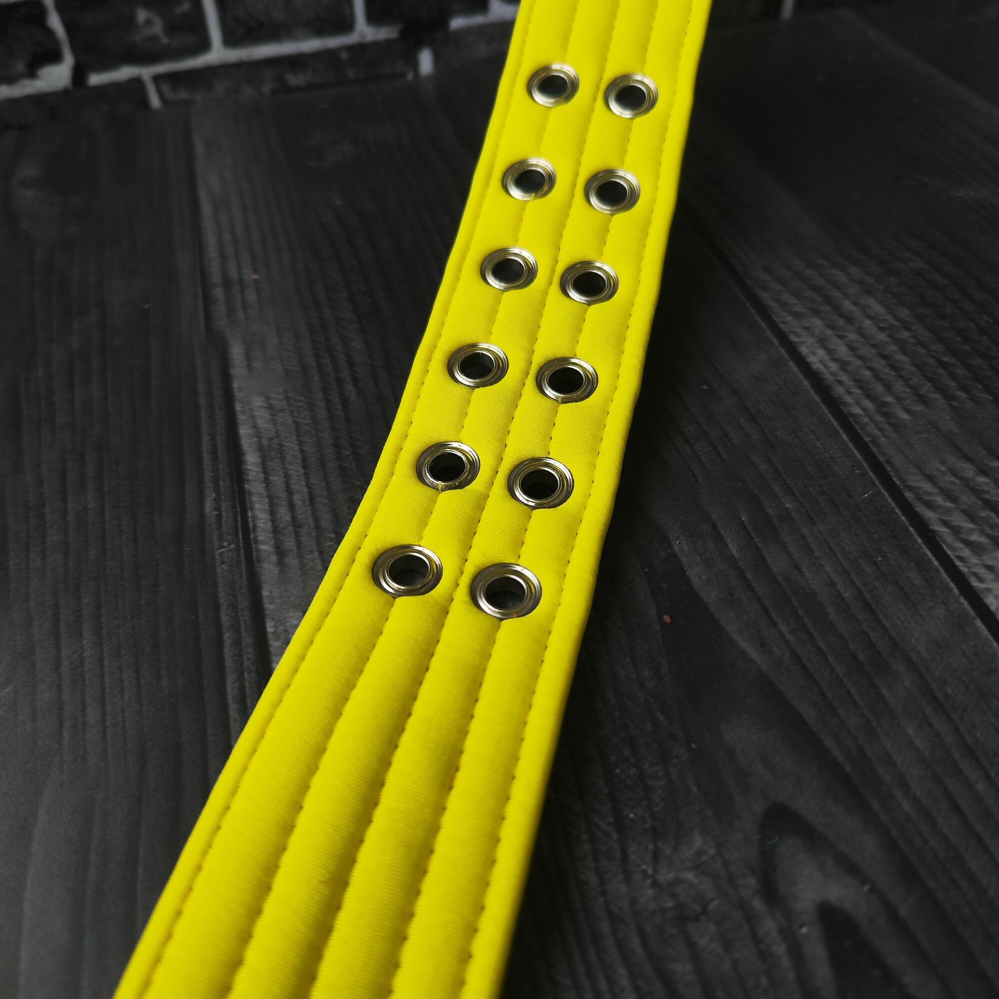Ошейник с ручкой для собак средних и крупных пород с мягким подкладом. Ширина 4.5 см. Сварная фурнитура. Обхват 43-55 см. Цвет желтый с черным