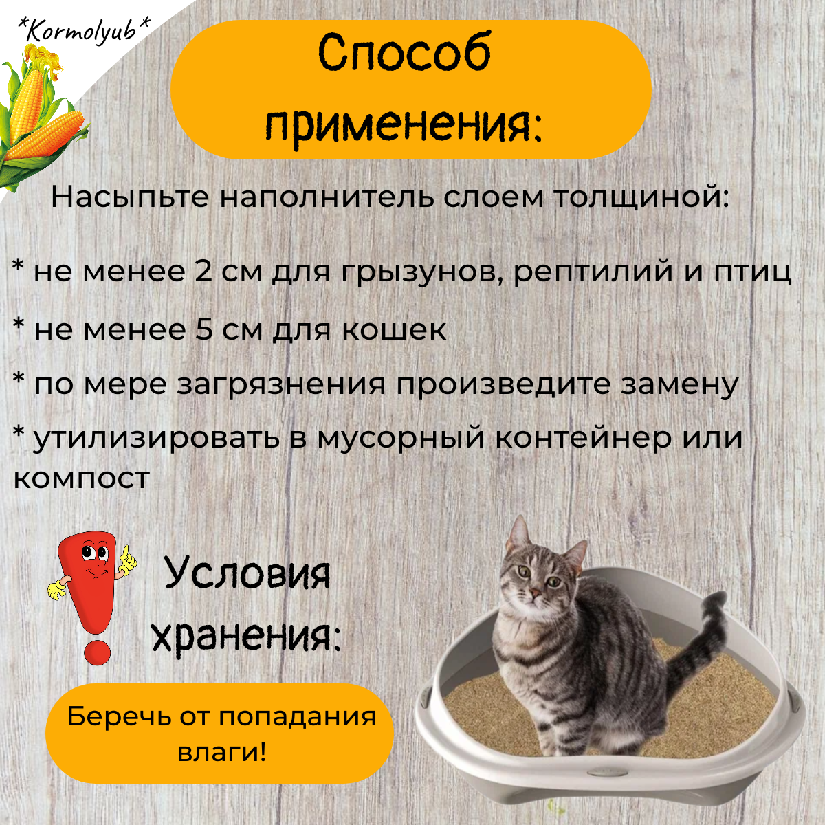 | Вид наполнителя | кукурузный |