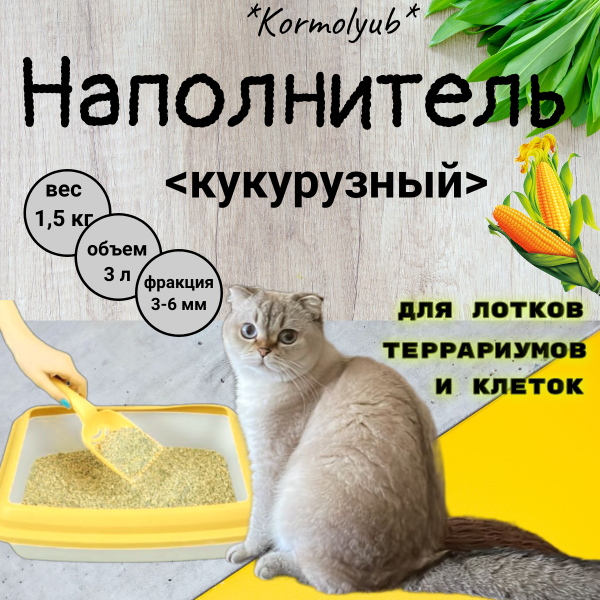 Кукурузный наполнитель для клеток грызунов и террариумов, впитывающий, фракция 2-6мм, вес1,5 кг интересное: