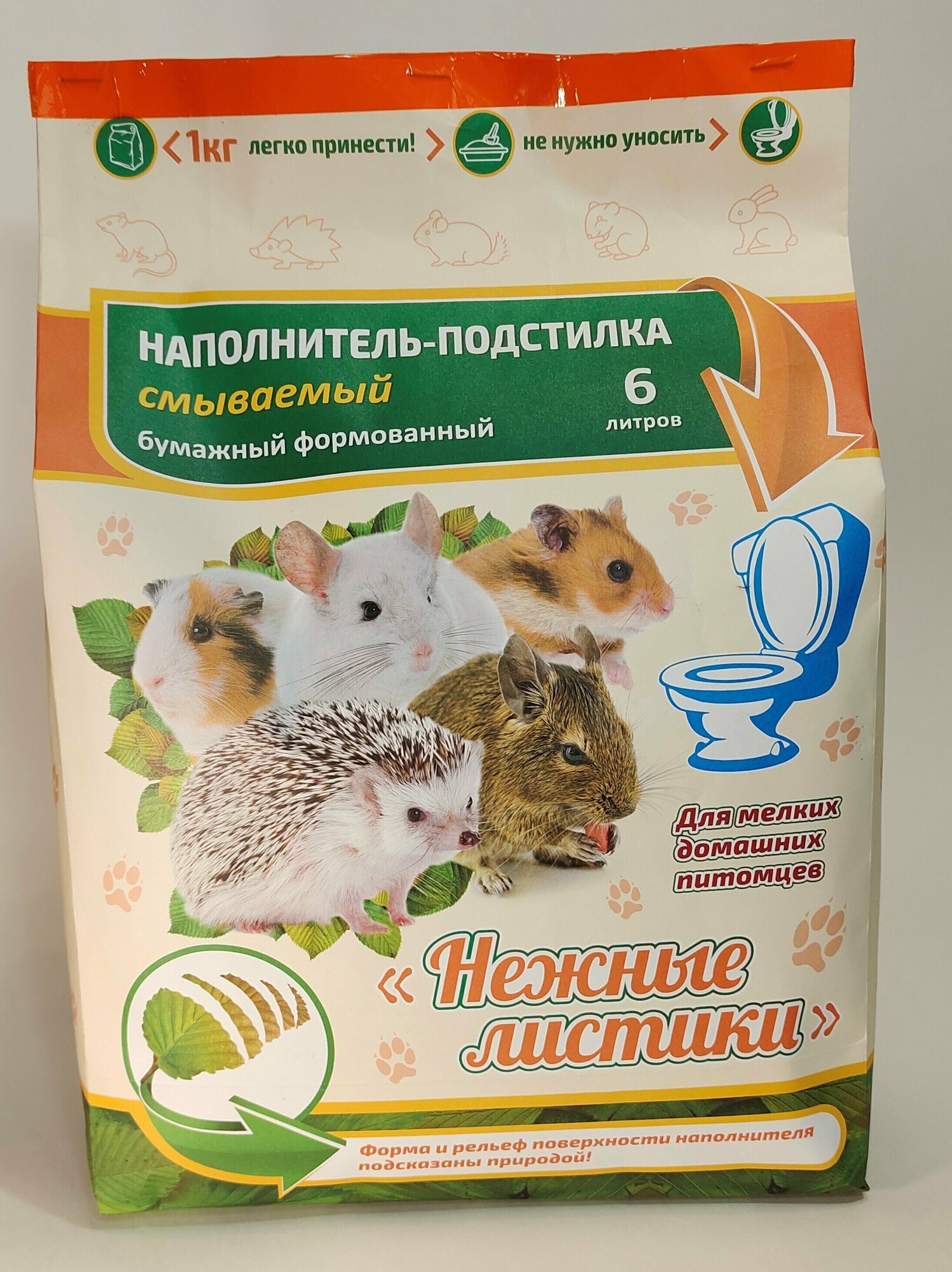 Наполнитель-подстилка смываемый бумажный формованный "Нежные листики" для мелких домашних питомцев 2 шт интересное: