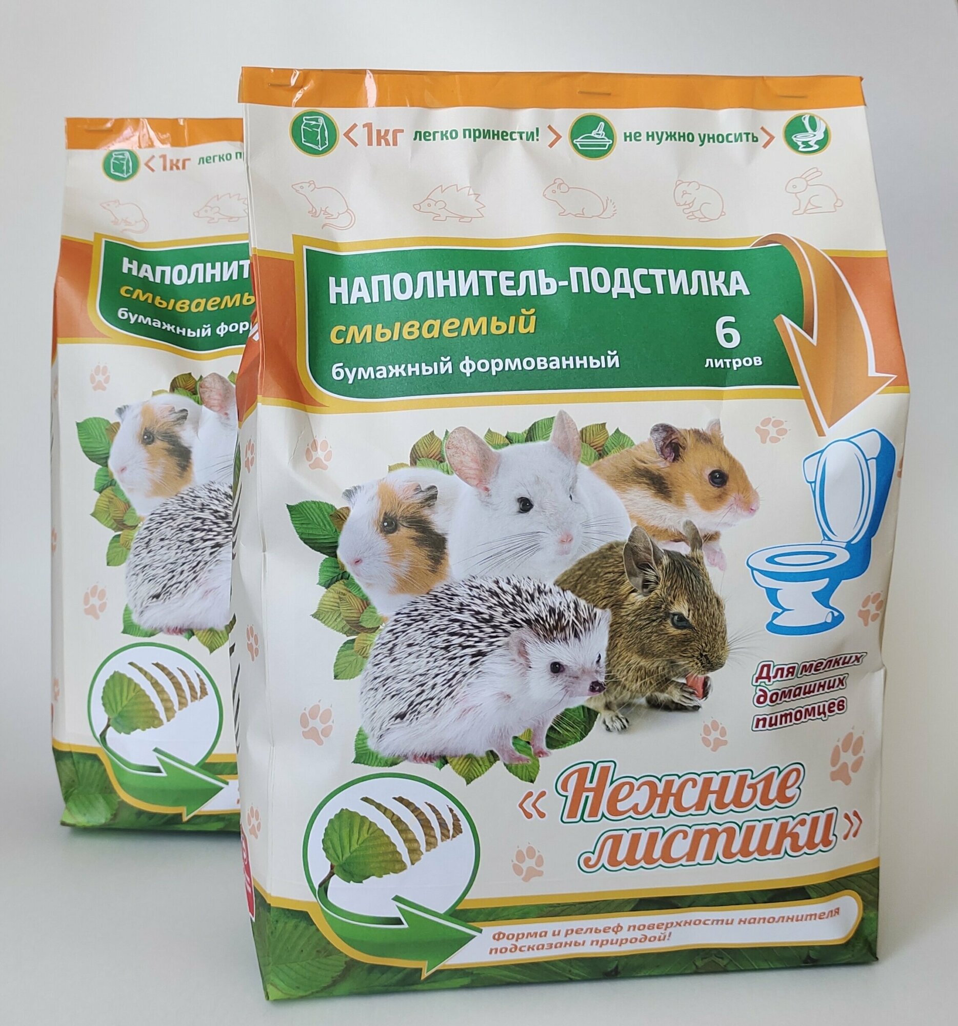 Купить Наполнитель-подстилка смываемый бумажный формованный "Нежные листики" для мелких домашних питомцев 2 шт