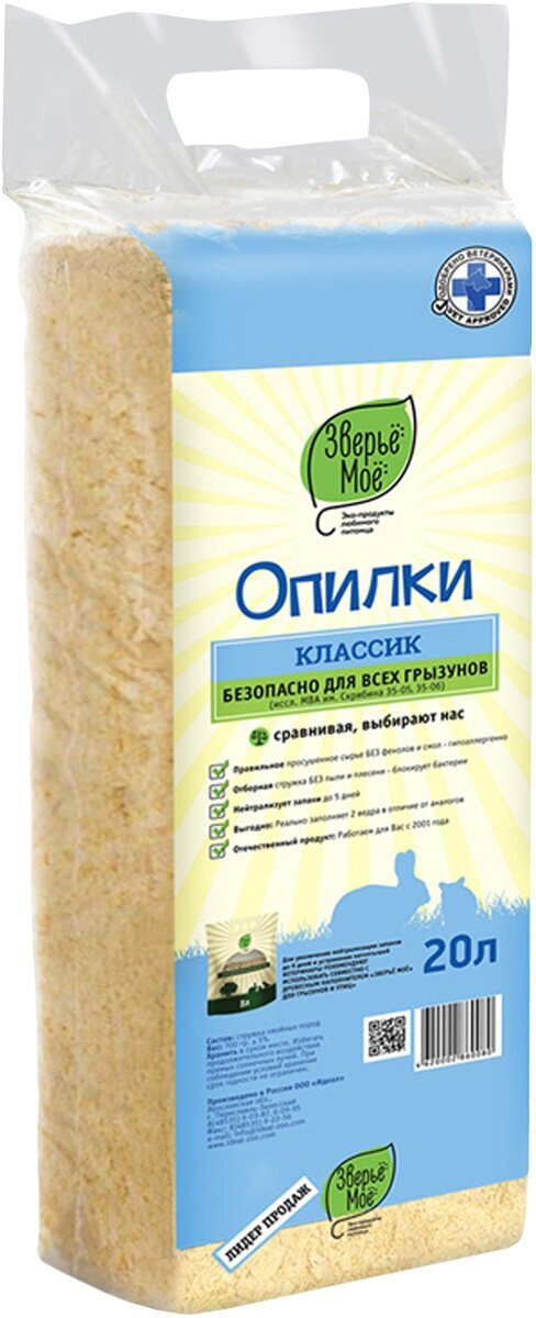 Зверьё МОЁ опилки для грызунов «Классик» (20 л) интересное: