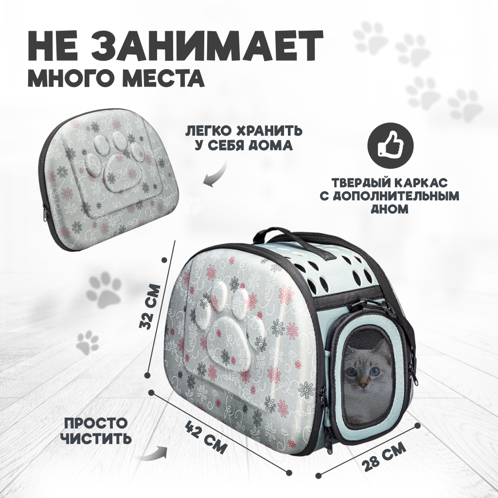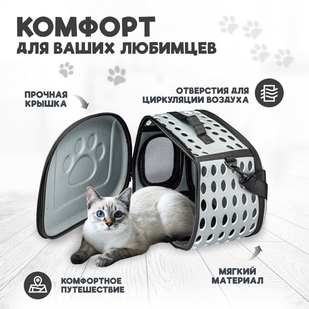 Переноска для животных Solmax, 42х28х32 см, серая, до 5 кг интересное: