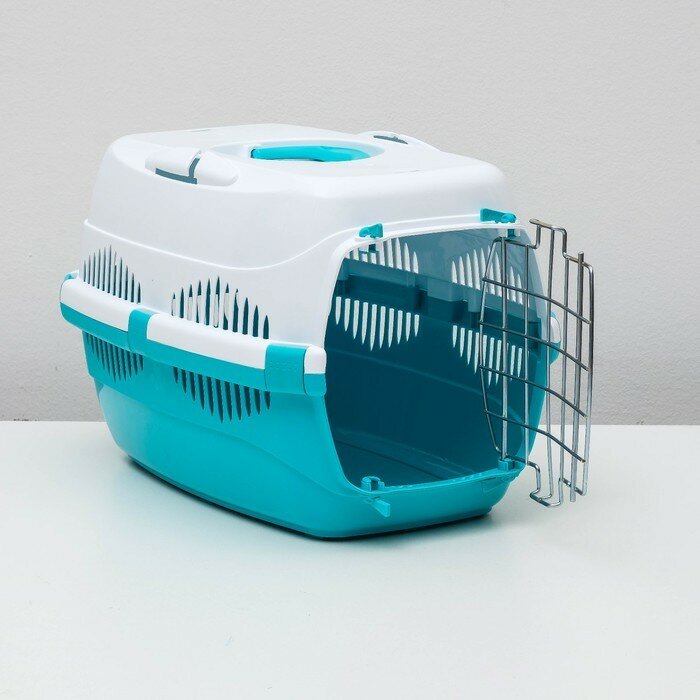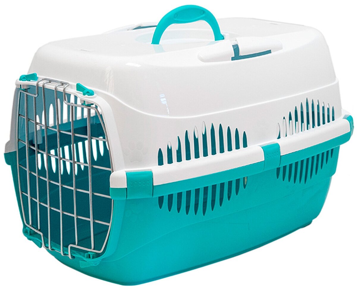 HOMEPET Переноска для животных, бирюзово-белая, 43х29х27 см/