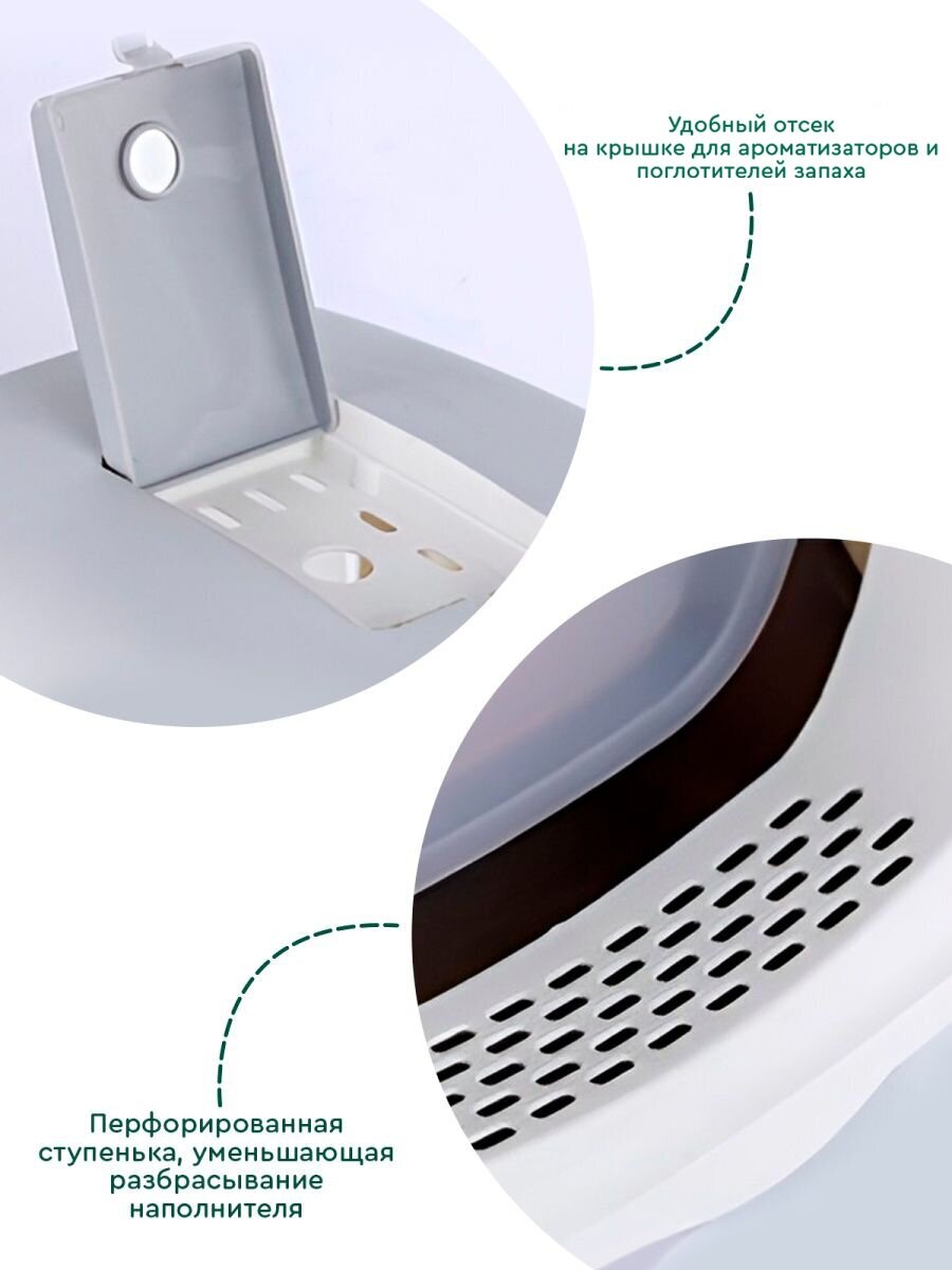 Купить Лоток для кошки + совок (49х39х38 см, серый) Hans&Helma закрытый с высоким бортом биотуалет с дверцей кошачий туалет большой домик горшок собакам