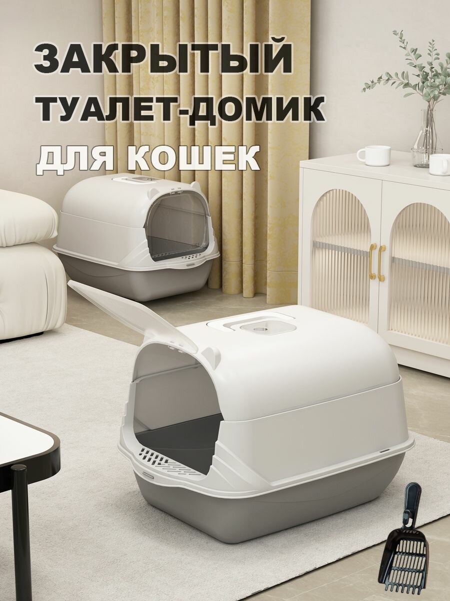 Лоток для кошек закрытый большой с совком и крышкой интересное: