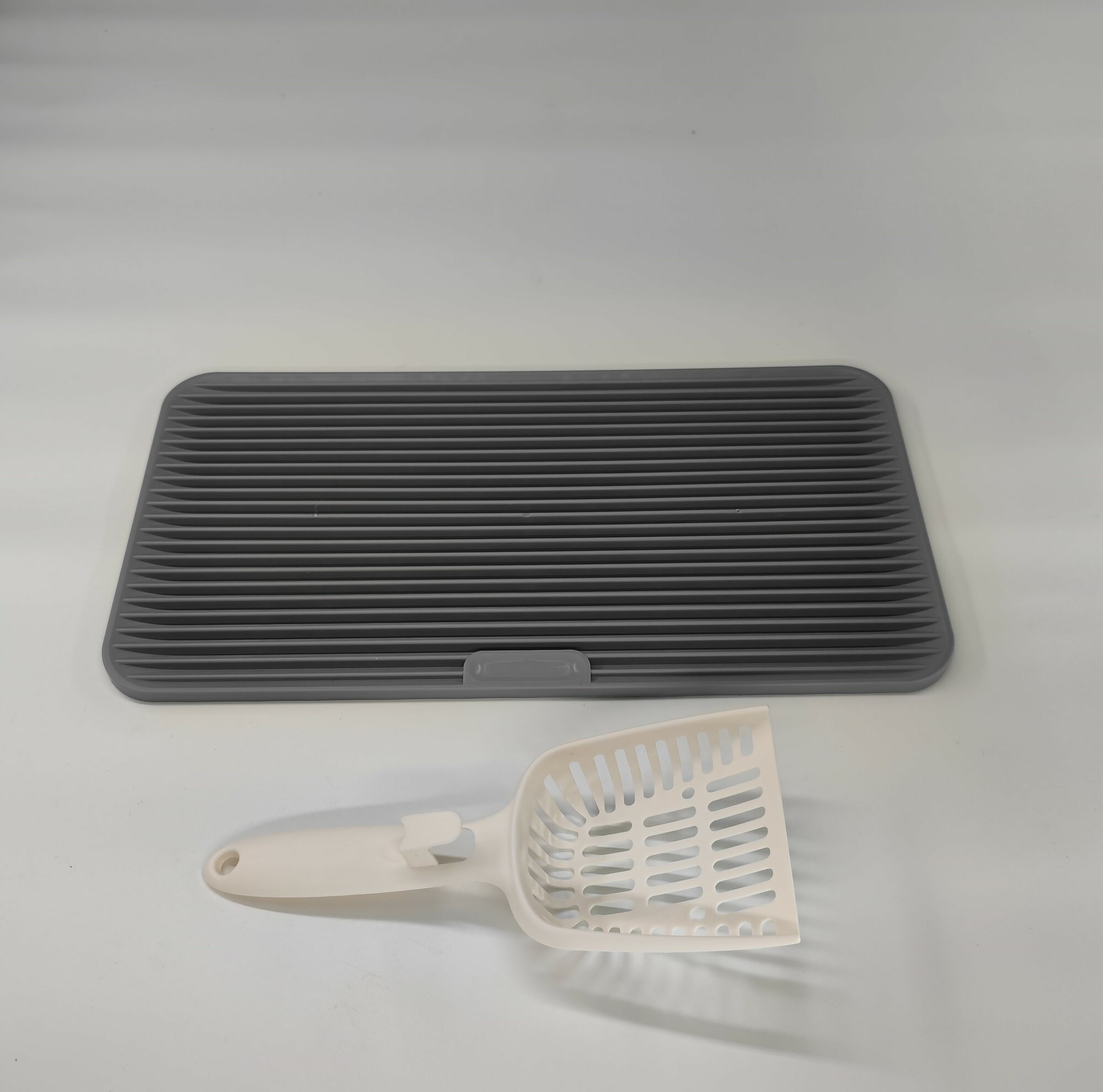 Закрытый лоток-домик с выдвижным поддоном и совком «Чистый котик» 41,5х45,5х45 см, серый