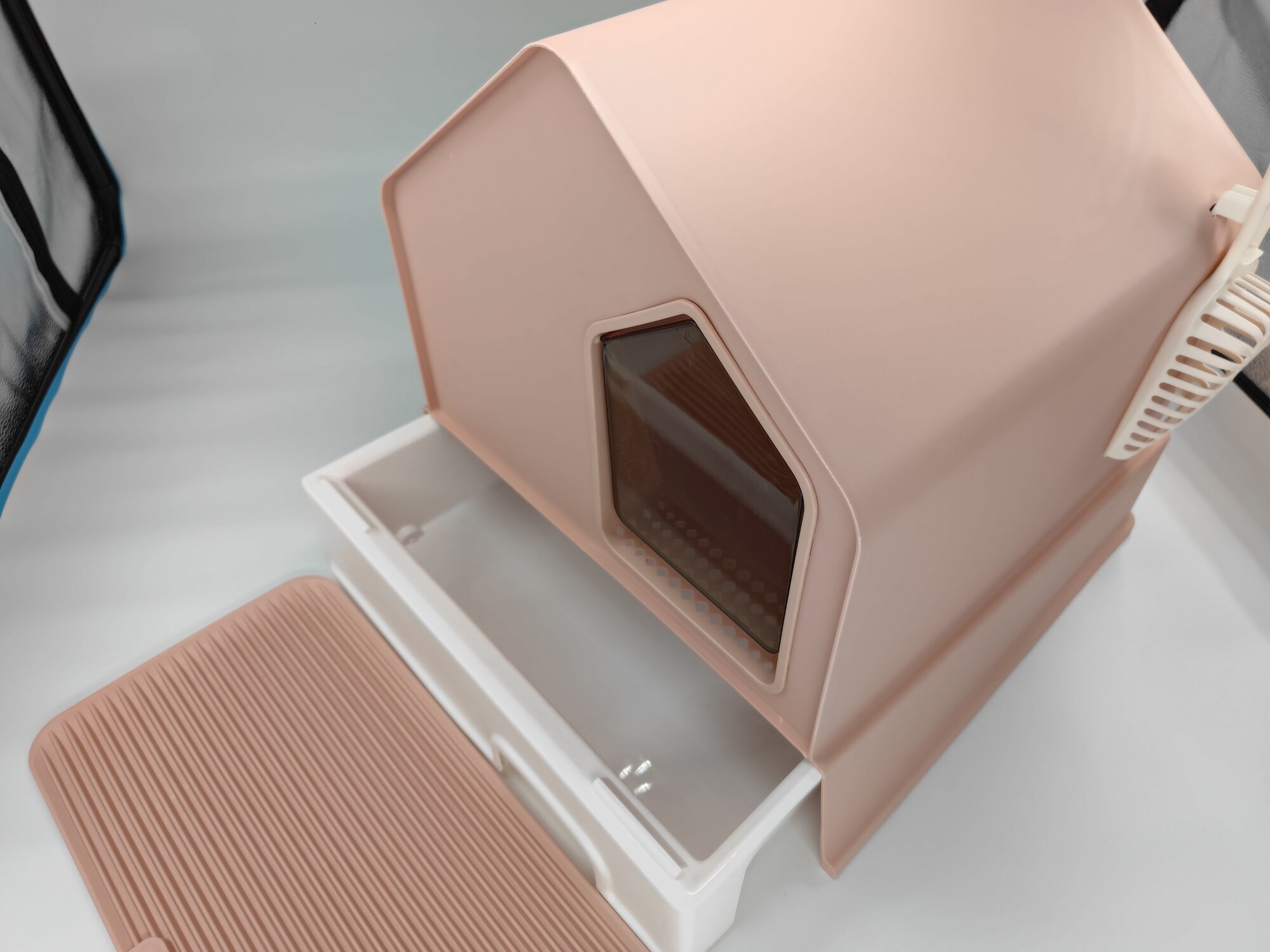 Закрытый лоток-домик с выдвижным поддоном и совком «Чистый котик» 41,5х45,5х45 см, розовый
