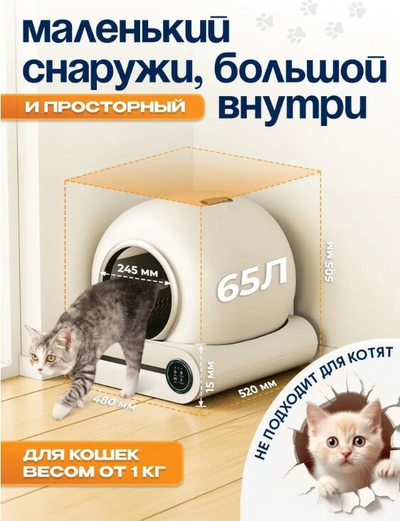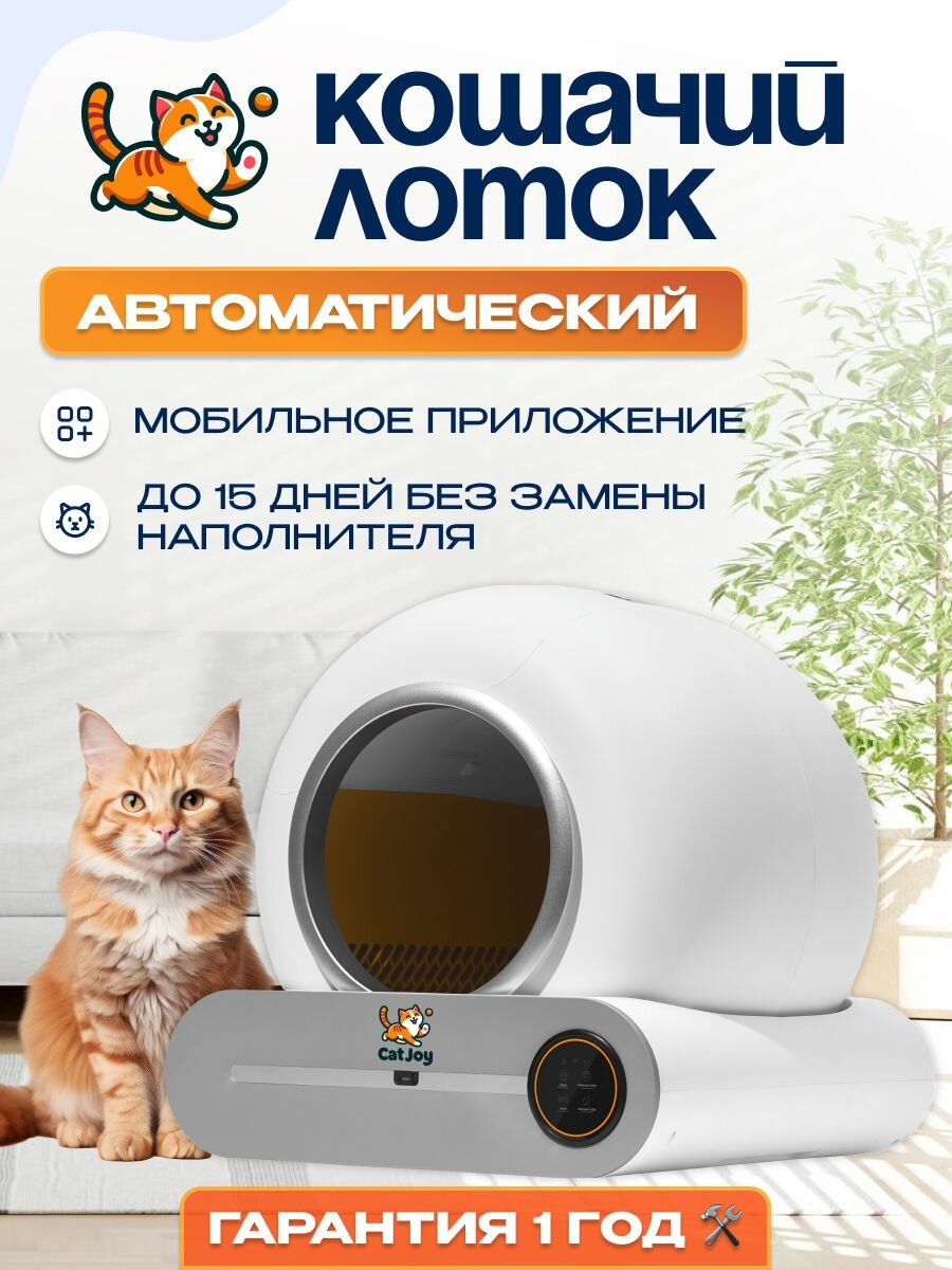 Умный автоматический лоток для кошек с бортом Cat Joy SCB-01 White интересное: