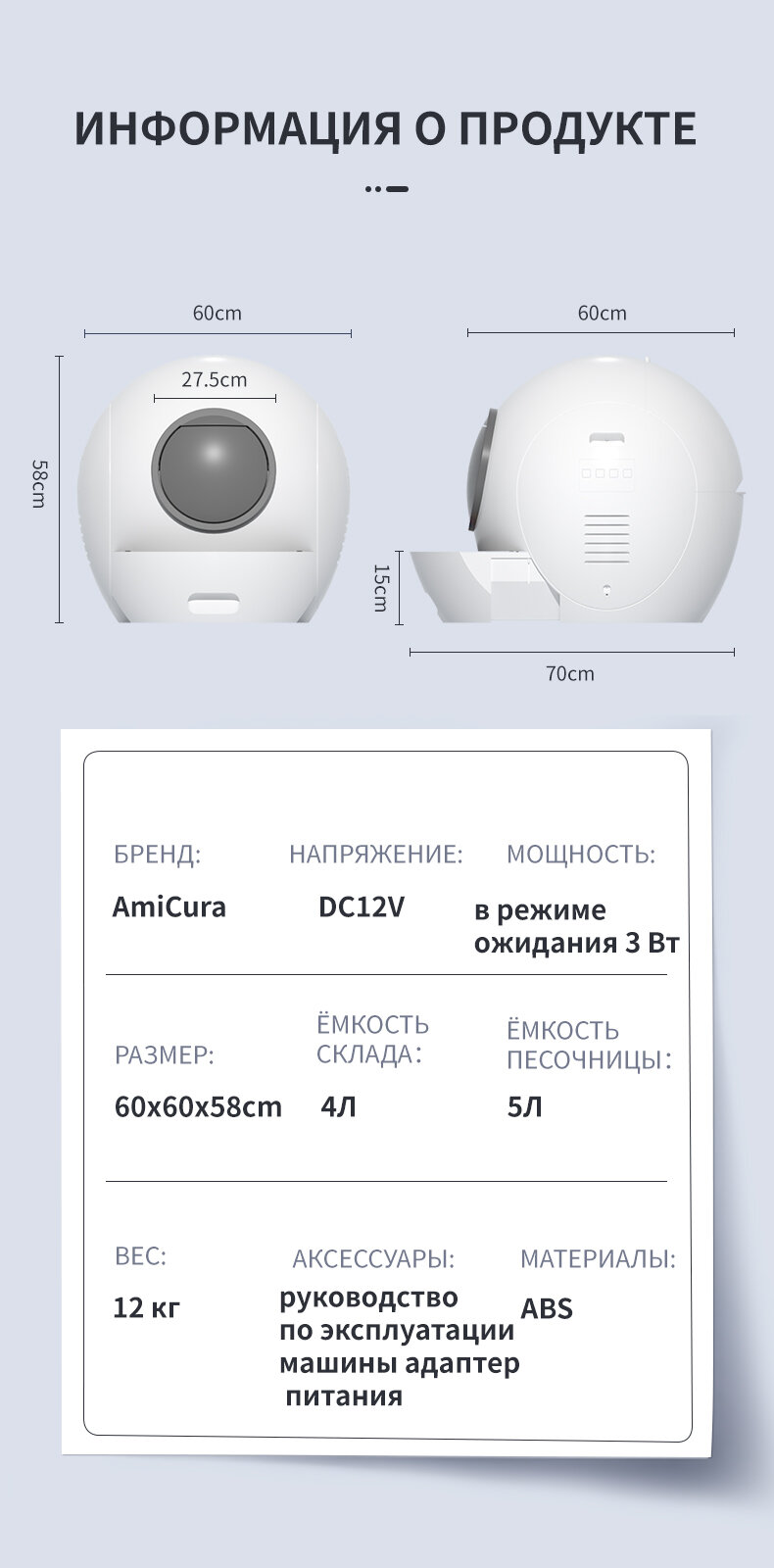 Туалет для животных AmiCura Автоматический Умный кошачий лоток интересное: