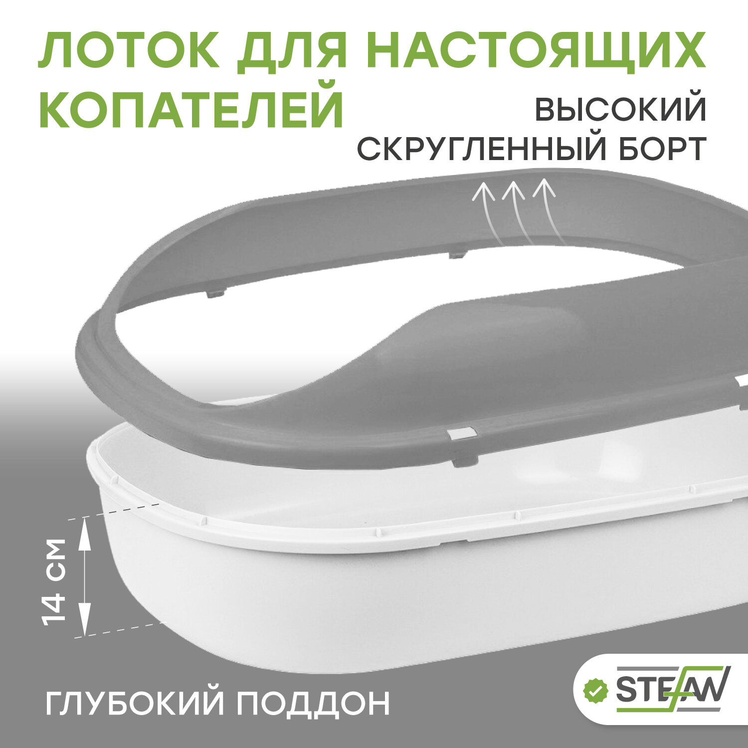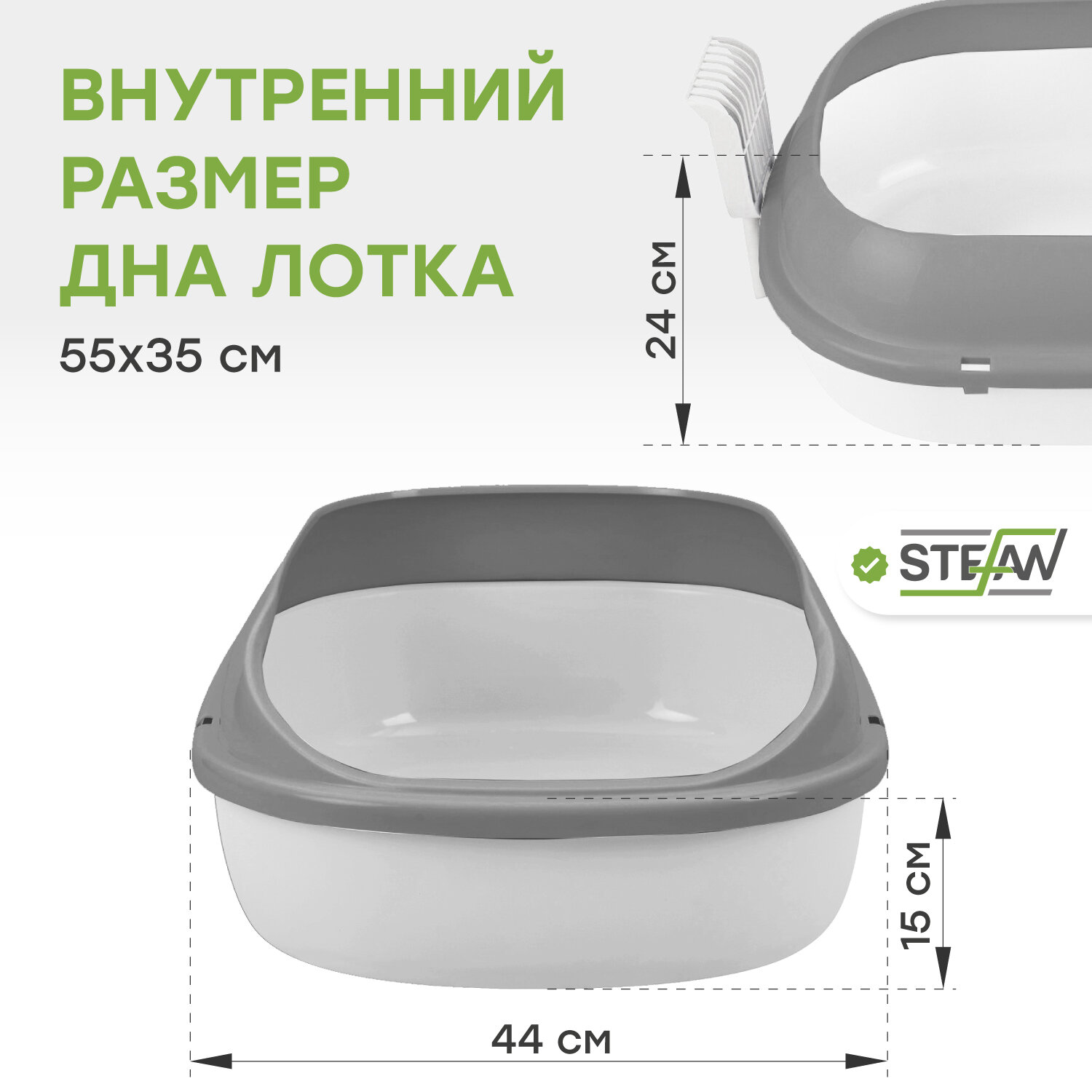 Большой лоток STEFAN (Штефан) для котов и кошек с высоким бортом и совком, (XL), размер 63х45х24см, серый, BP29011