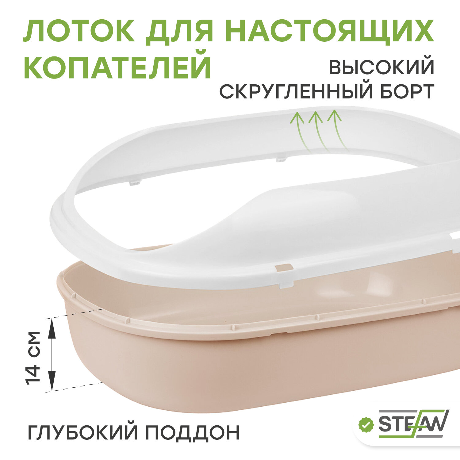 Купить Лоток для кошек с высокими бортиками STEFAN (Штефан) большой, под наполнитель(ХL), 63х45х24, BP29013, бежевый