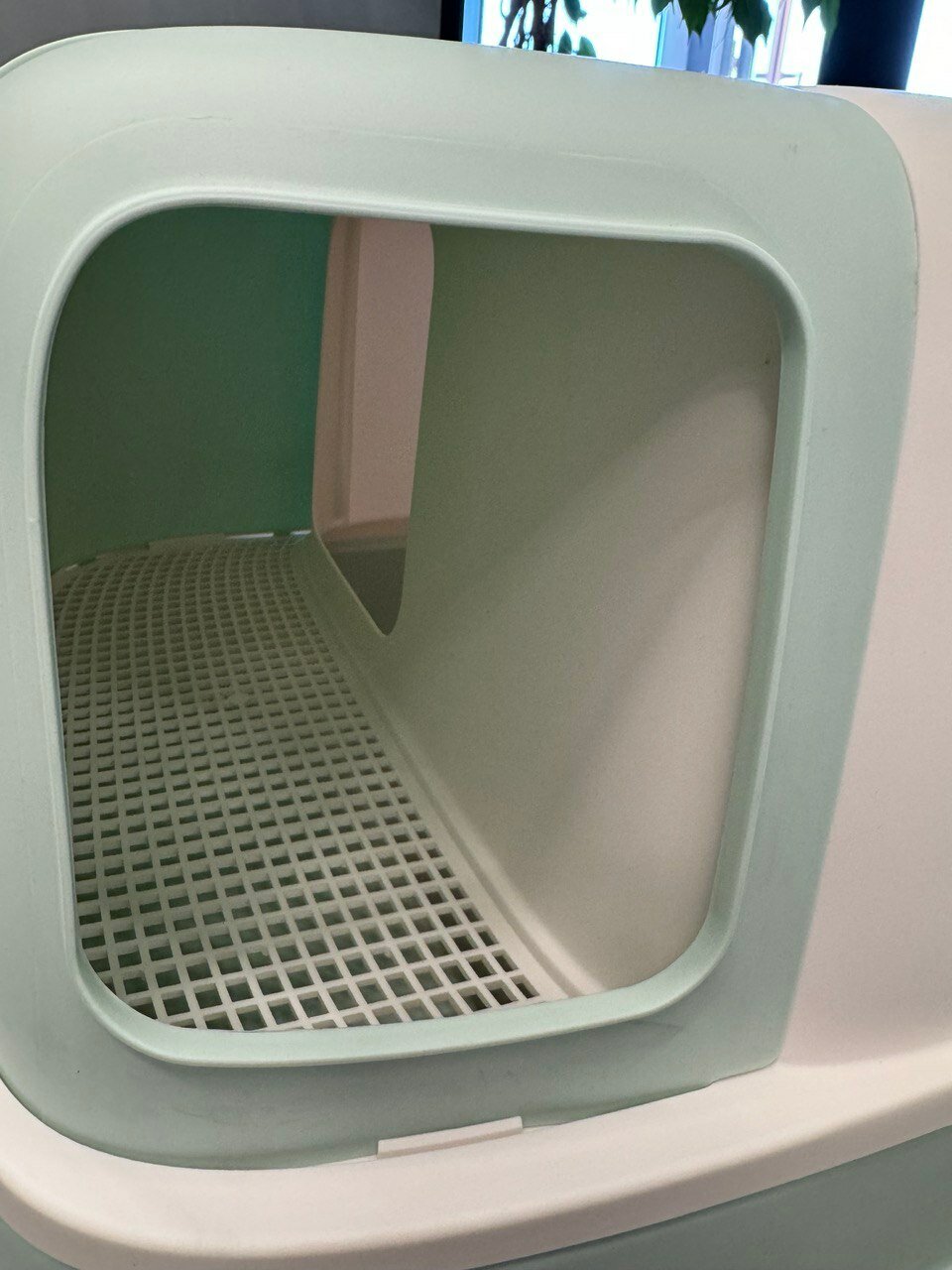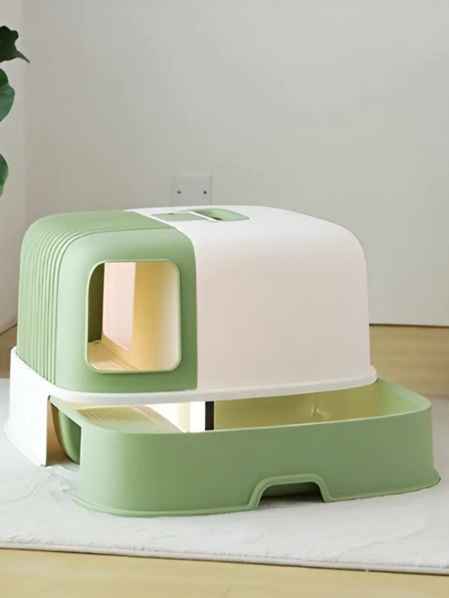 Закрытый туалет для кошек "Чистый котик"с коридором и фильтром,зеленый,пластик 57*52*38 см
