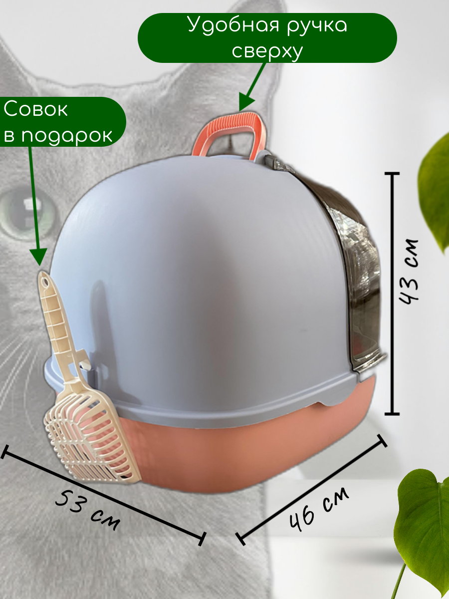Закрытый лоток для кошачьего туалета с совком, угольным фильтром и пакетом "Чистый котик" 57х44х40 см