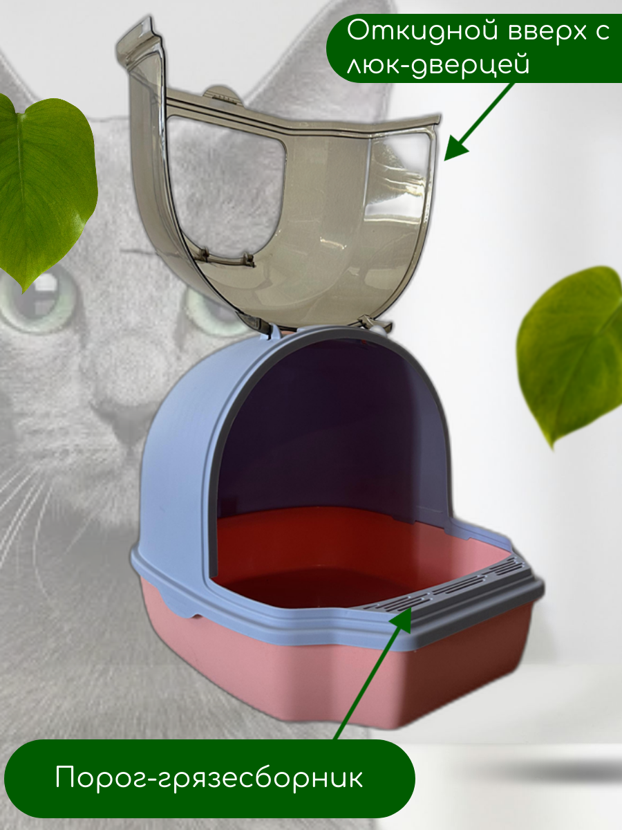 Купить Закрытый туалет для кошек "Чистый котик"с откидной крышкой, голубой ,пластик 54*46*43 см