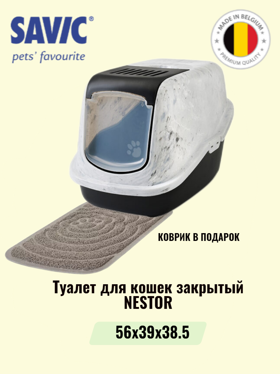 СохранитьТуалет для кошек закрытый SAVIC NESTOR серый мрамор/черный (коврик в подарок) интересное: