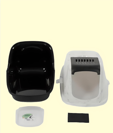 Туалет для кошек закрытый SAVIC NESTOR белый/черный (шампунь в подарок)