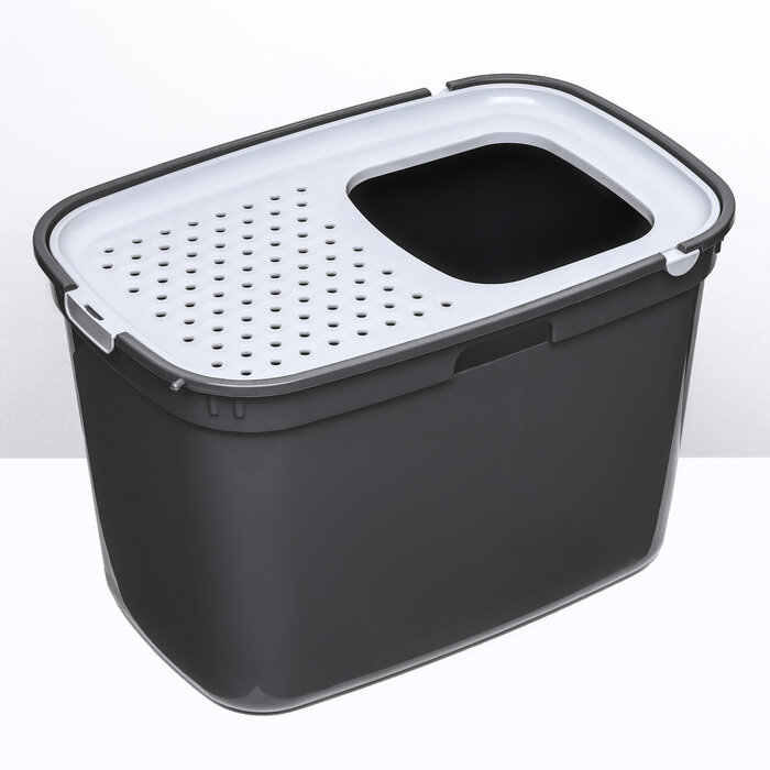 Купить Туалет-домик для кошек закрытый с верхним входом 59*38*39 см, серый
