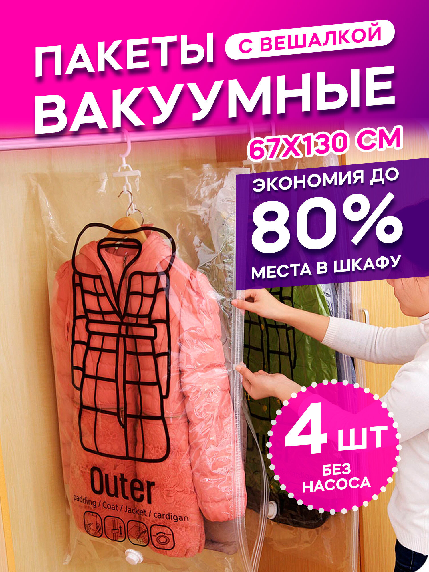Вакуумные пакеты для верхней одежды с вешалкой и насосом
