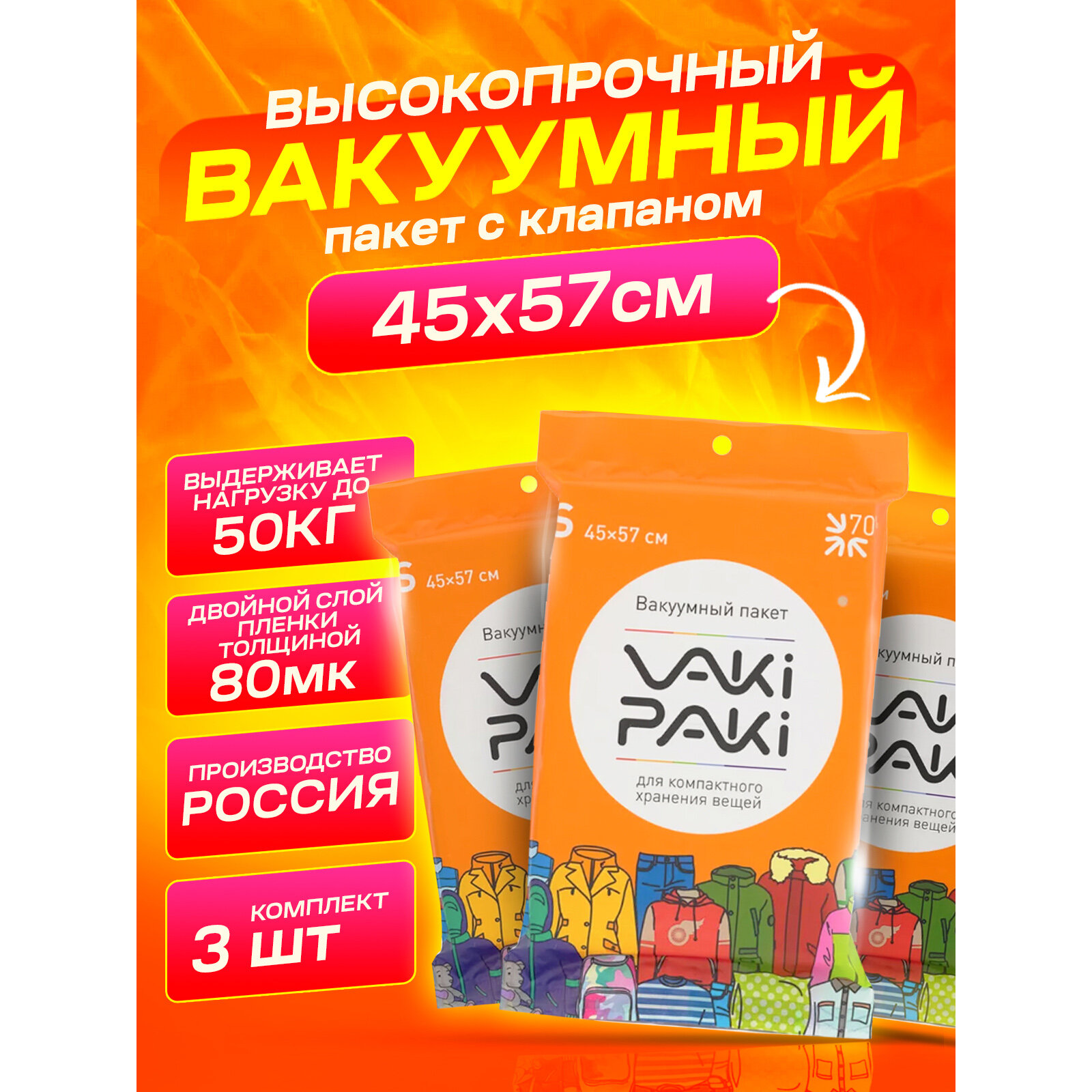 Купить Набор вакуумных пакетов для вещей VakiPaki S 45x57, 3 шт.
