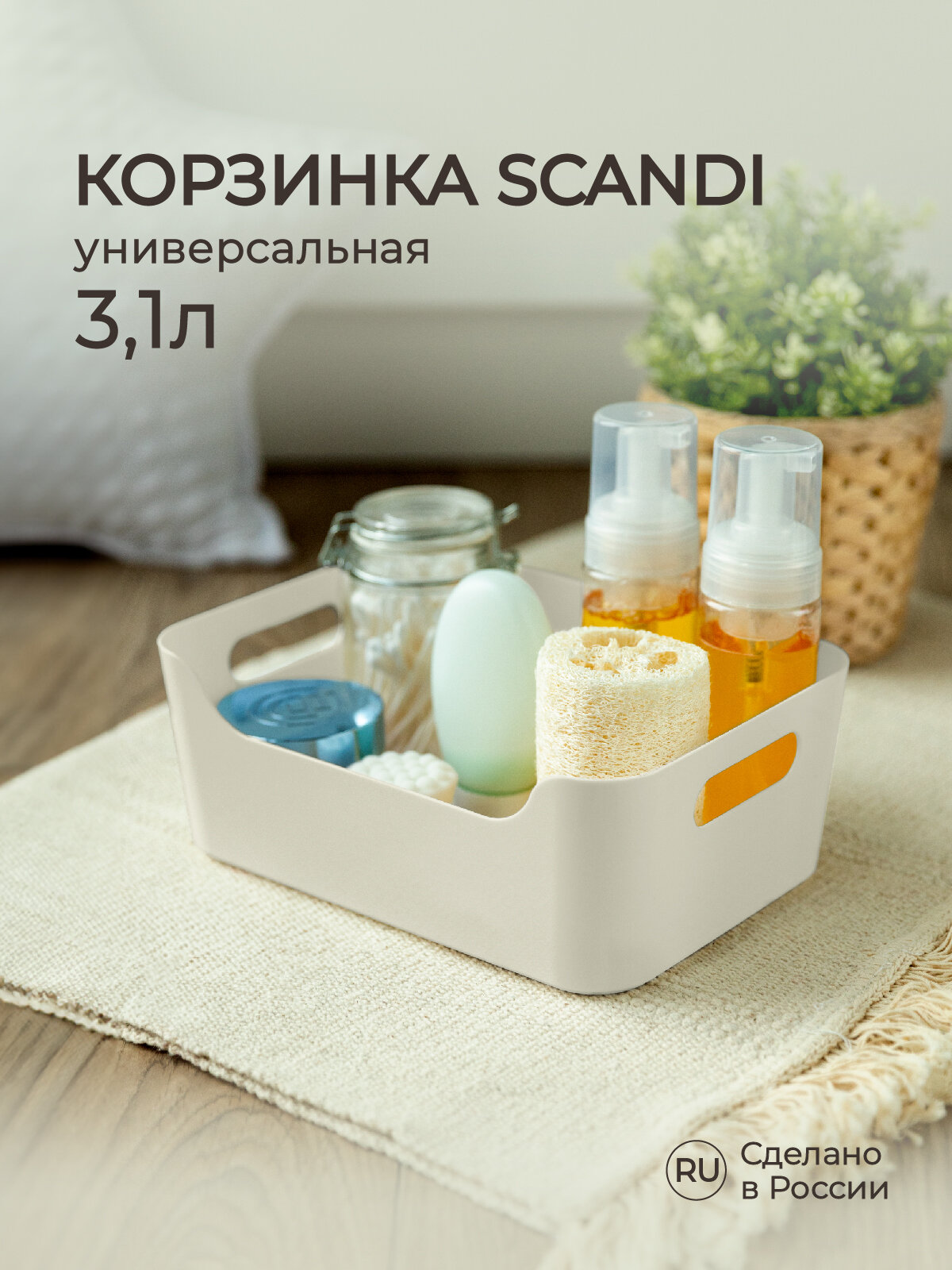 Корзинка универсальная SCANDI, 170x120x75 мм, 1,2л (светло-серый)