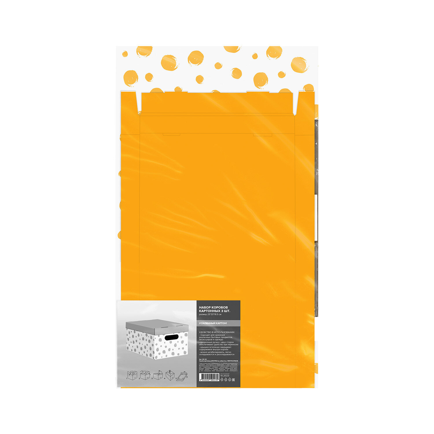 Купить Коробка для хранения вещей с крышкой картонная, 3 шт., Пингла желтая