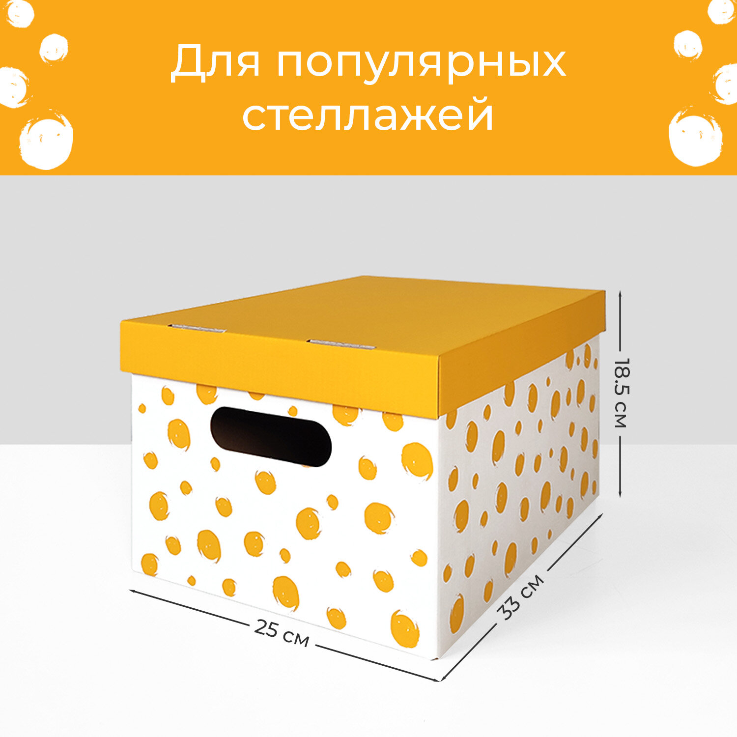 Коробки для хранения вещей, игрушек, обуви, картонные, короб для хранения с крышкой, 33*25*18,5 см, набор 8 шт, Горошек