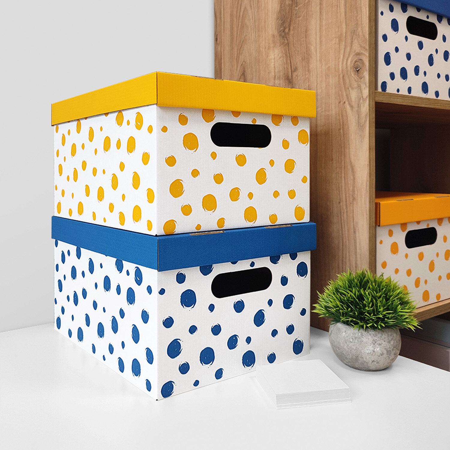 Коробка для хранения вещей с крышкой картонная, 8 шт., Горошек