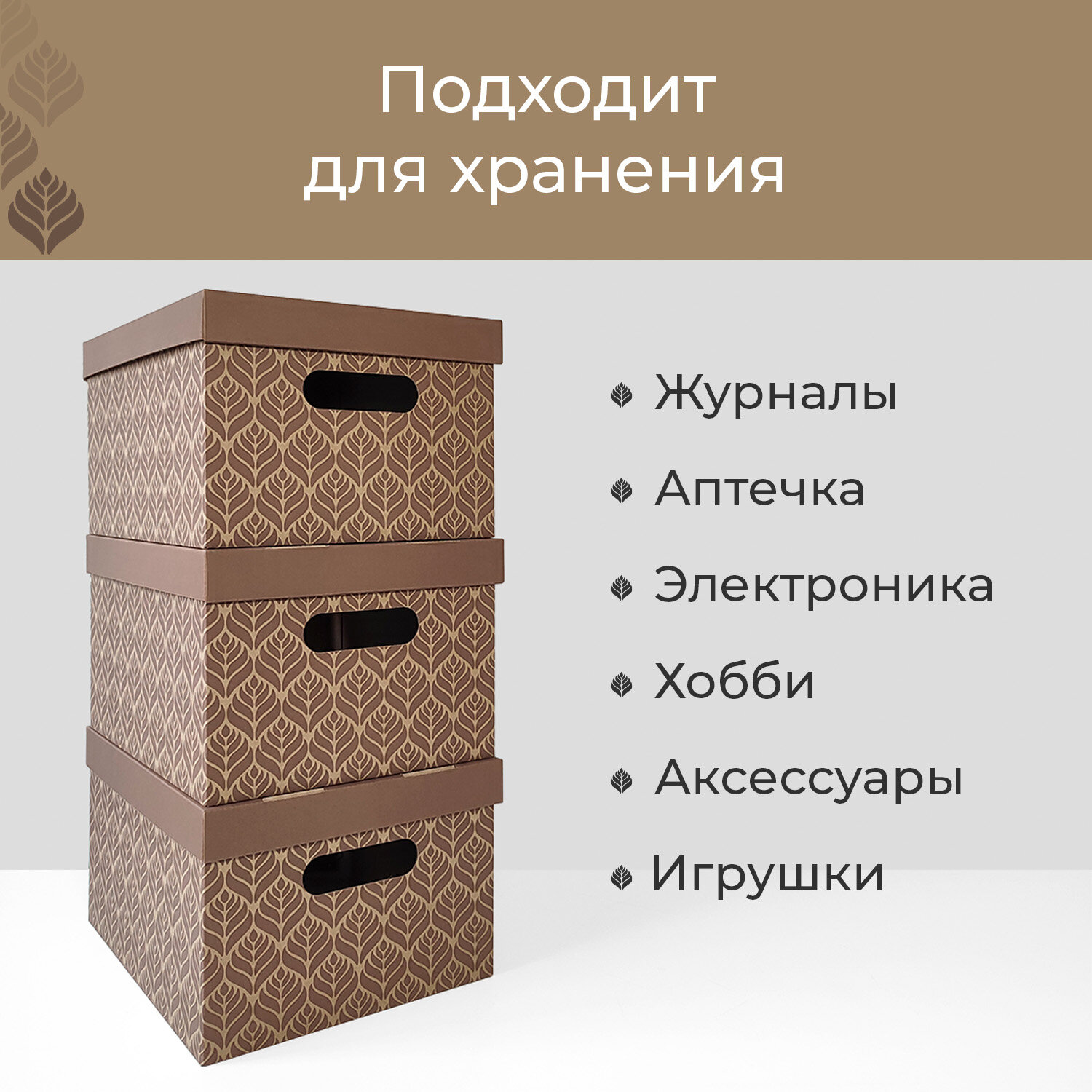 Коробки для хранения вещей, игрушек, обуви, картонные, короб для хранения с крышкой, 33*25*18,5 см, набор 3 шт, Листья