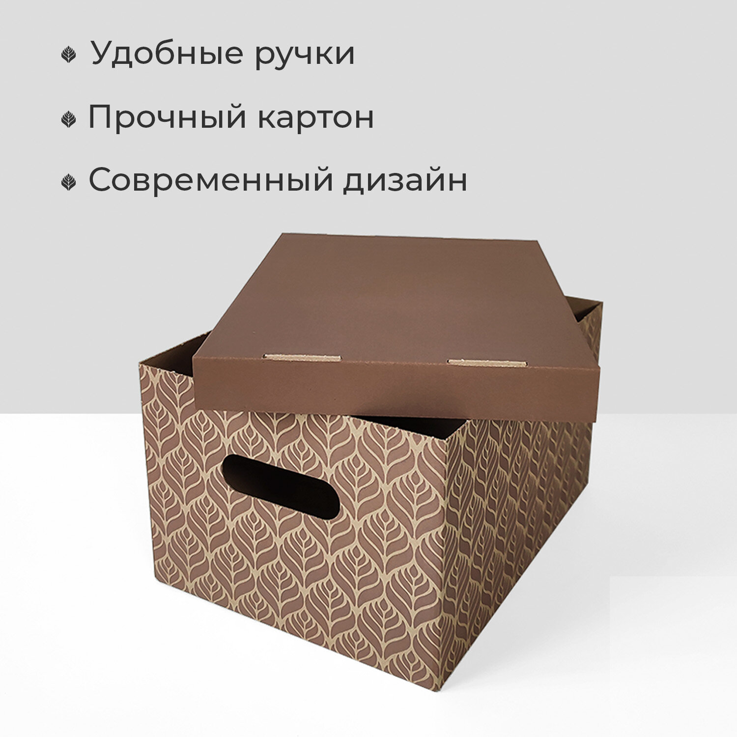 Коробка для хранения вещей с крышкой картонная, 3 шт., Листья