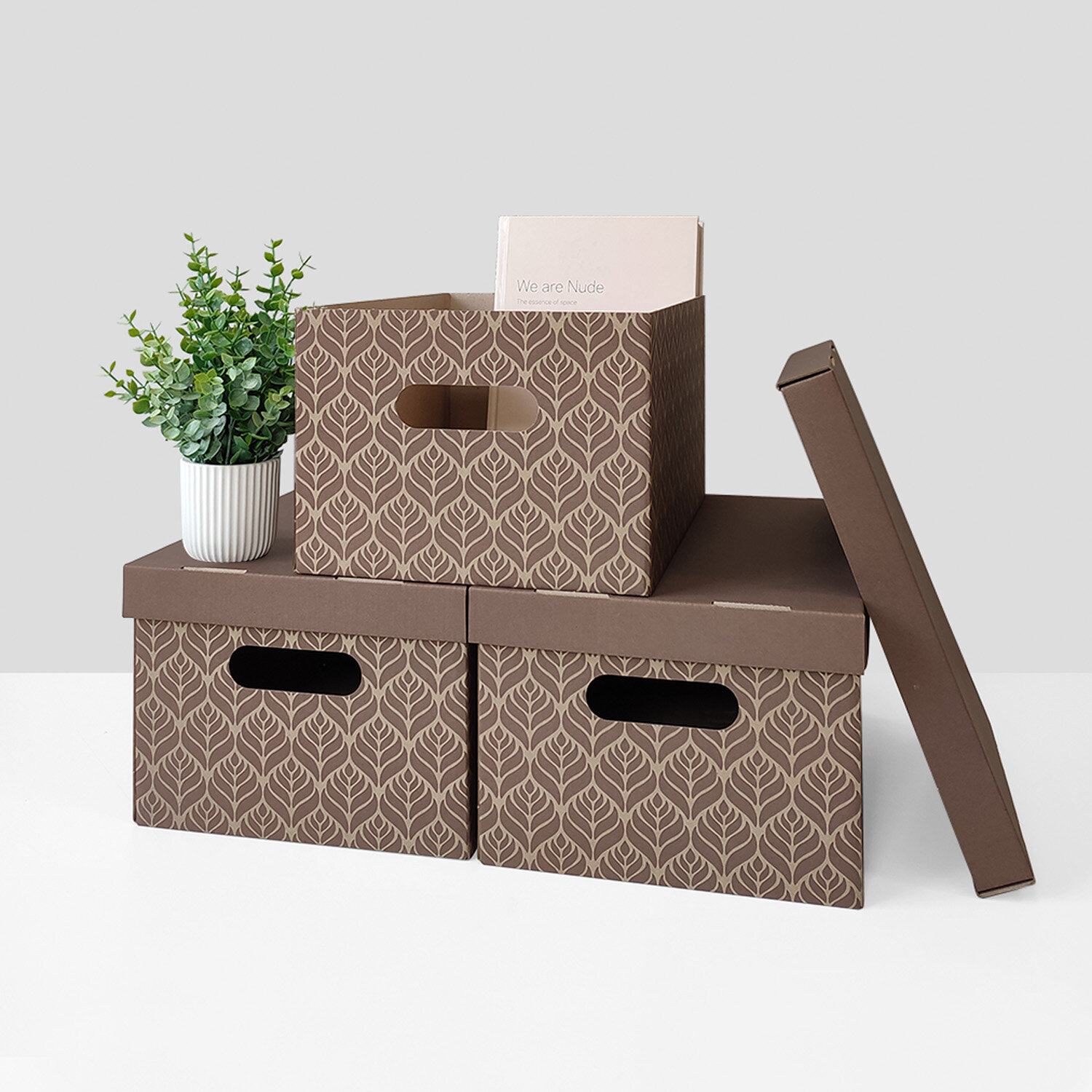 Коробка для хранения вещей с крышкой картонная, 3 шт., Лук