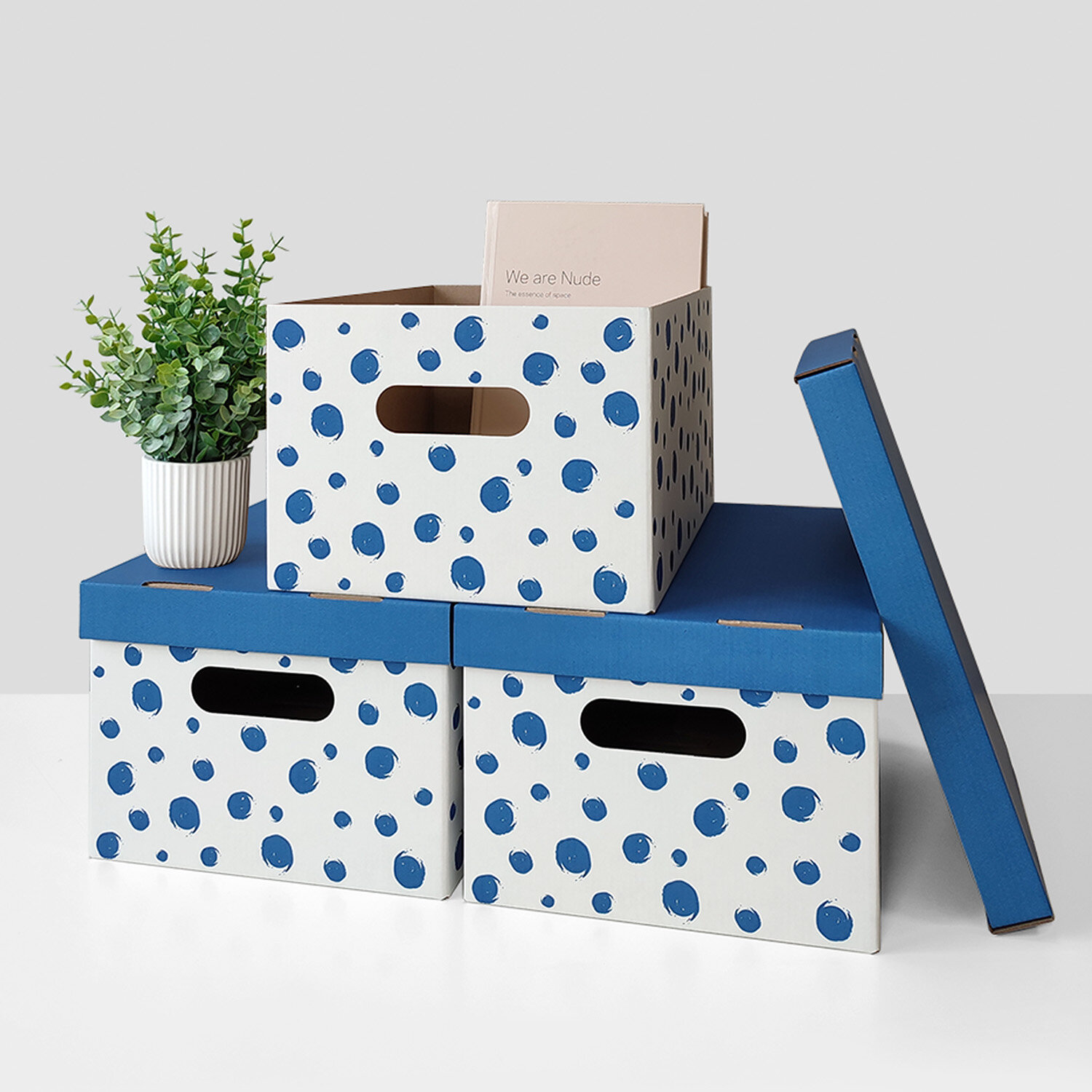 Коробка для хранения вещей с крышкой картонная, 3 шт., Горошек