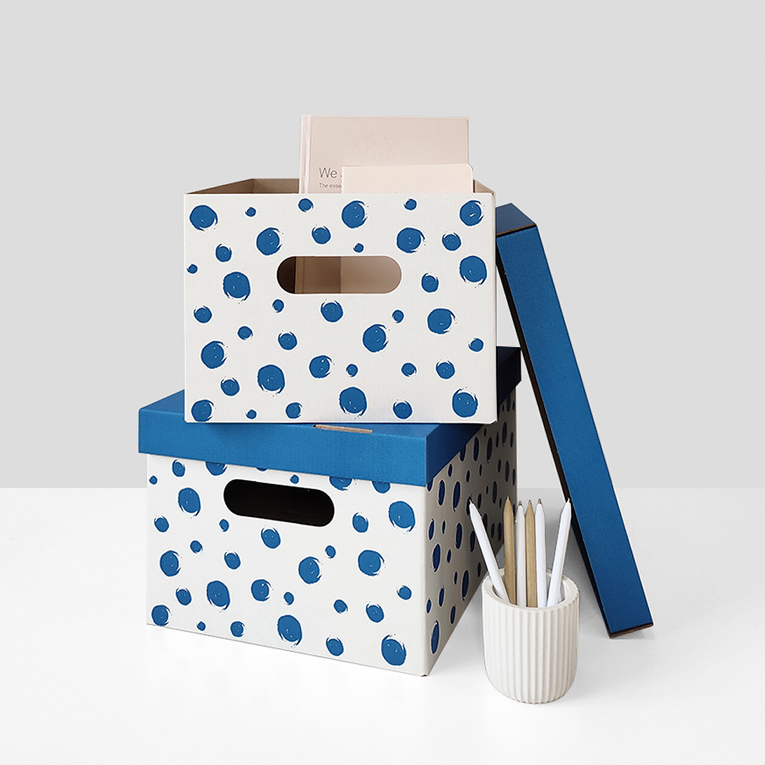 Коробка для хранения вещей с крышкой картонная, 8 шт., Горошек