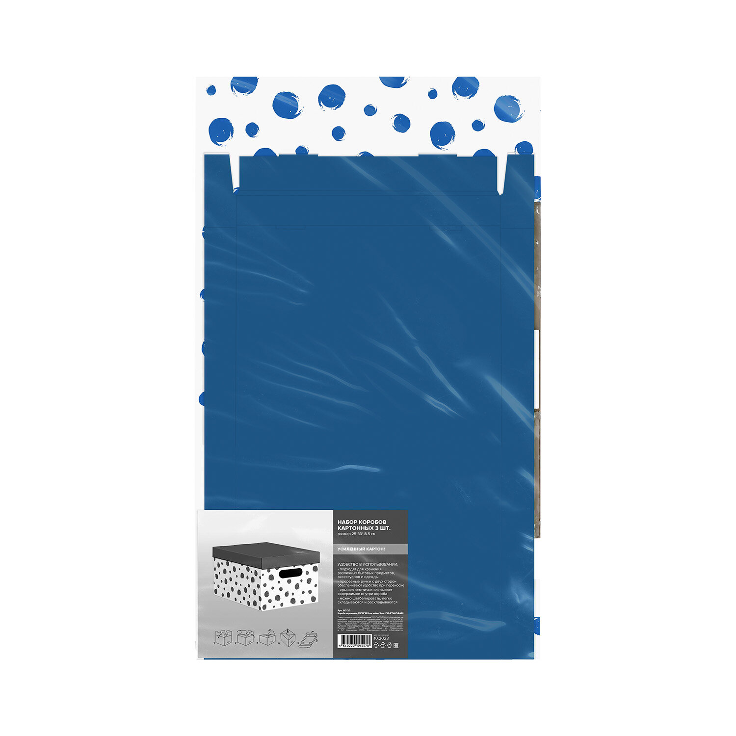 Купить Коробка для хранения вещей с крышкой картонная, 3 шт., Пингла синяя
